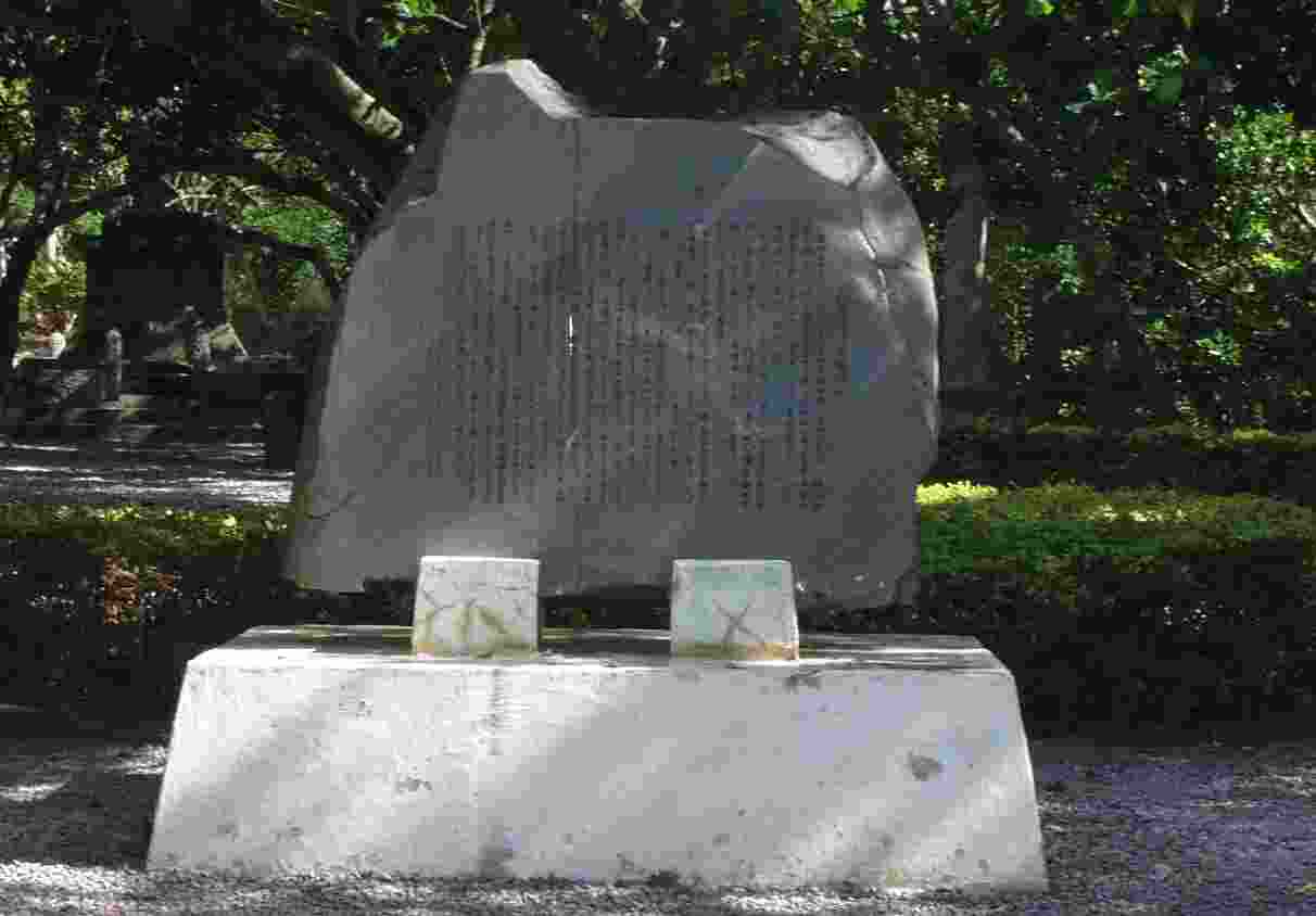 | 2.兵士の看病を続けた2つの学園の女学生たちの慰霊塔。 生徒と先生の名前が刻まれている |