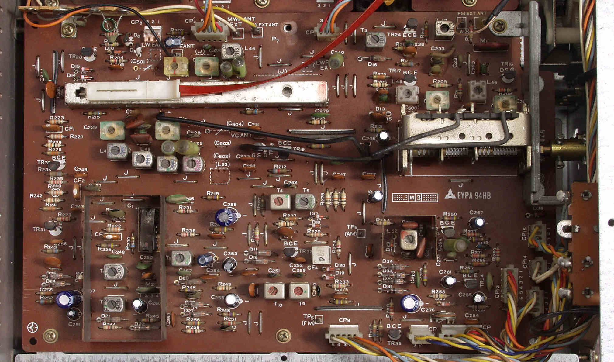 | C22. 修理後 IF基板 電解コンデンサー14個、TR(トランジスタ−)4個交換 |