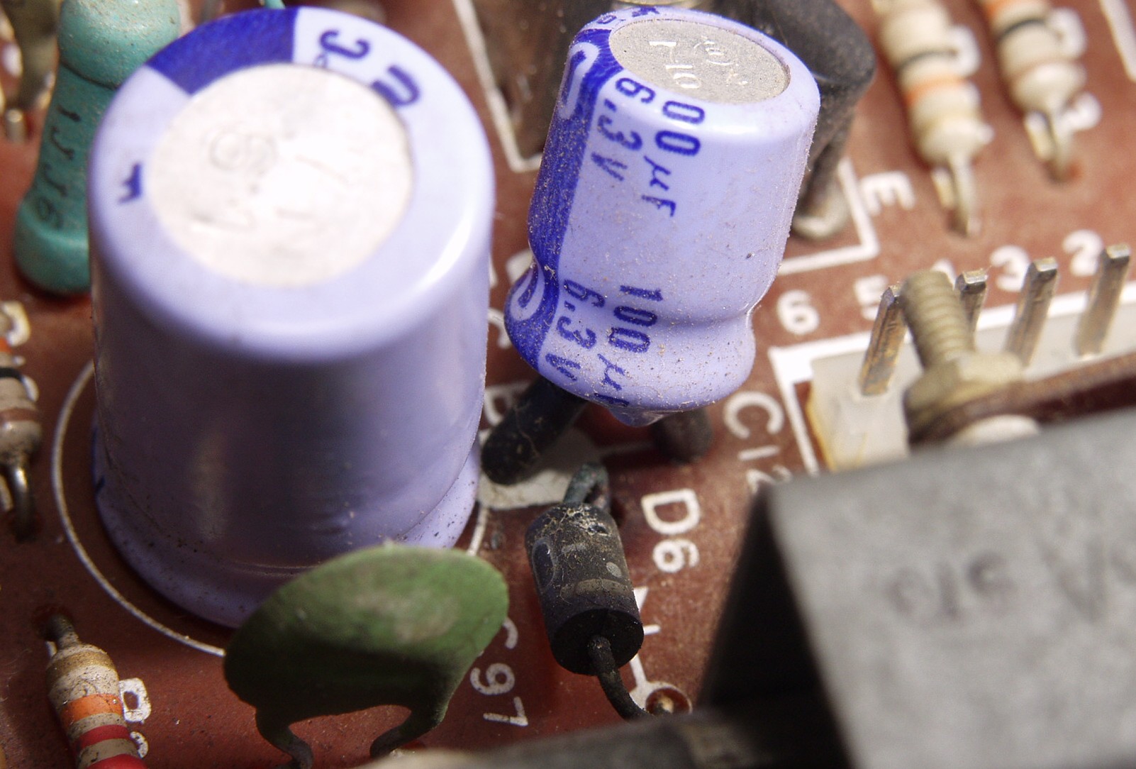 | C322. 修理中 RF基板 電解コンデンサーの液漏れによるダイオードの腐食 |