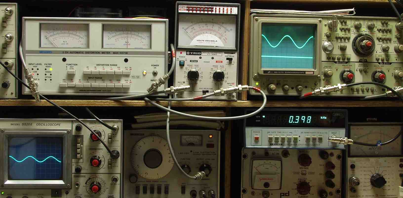 | E−4D. L側SP出力=28V=98W 歪み率0.06% at=400HZ AUX端子入力 |