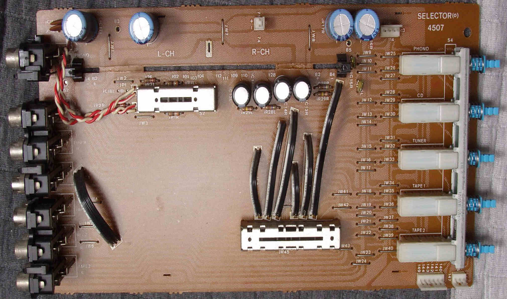 | C−7B. 修理後 コントロール基板 FET(電界効果トランジスター)2個、電解コンデンサー10個、SW4個交換 |
