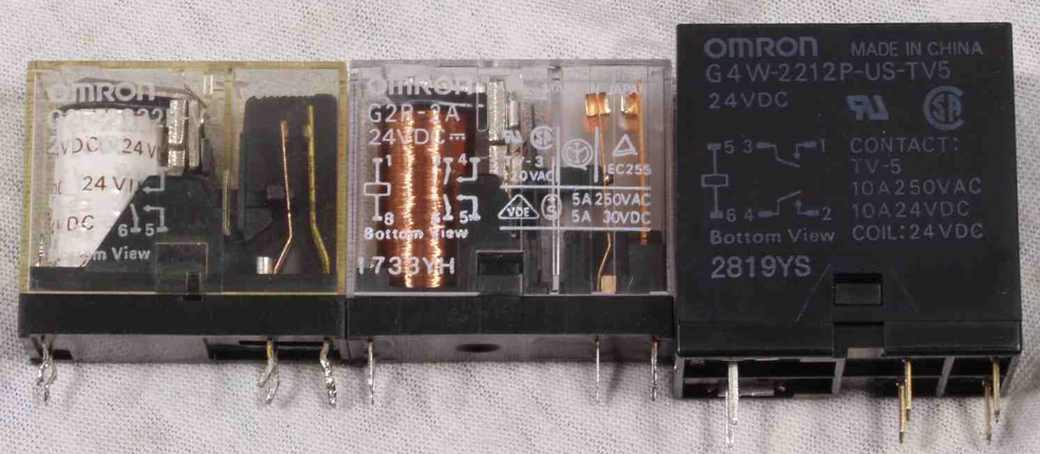 | A−2. リレー比較 左=付いていた物、中=同等の現在の製品、右=907で使用する物=今回使用した |