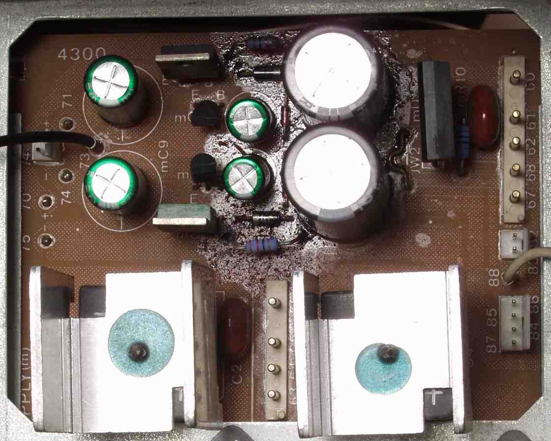 | C−4B. 修理後 電源基板 電解コンデンサー6個、定電圧ダイオード2個交換 |