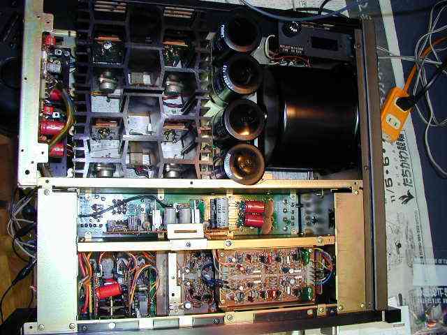 | 1. 修理中 このAMPは全終段TR(トランジスター)使用のため、 終段TR(トランジスター)独特の高域の「ヒスノイズ」が出ます |