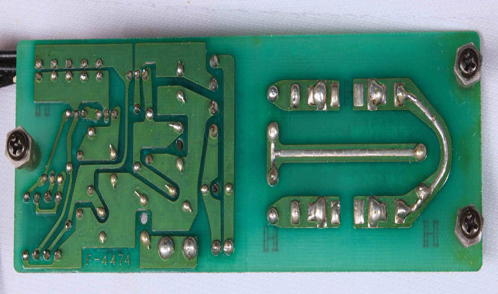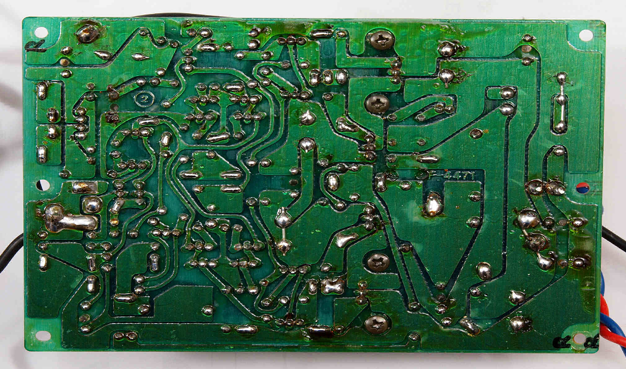CA3. 修理(半田補正)後 入力端子裏の基板。 半田を全部やり直す。