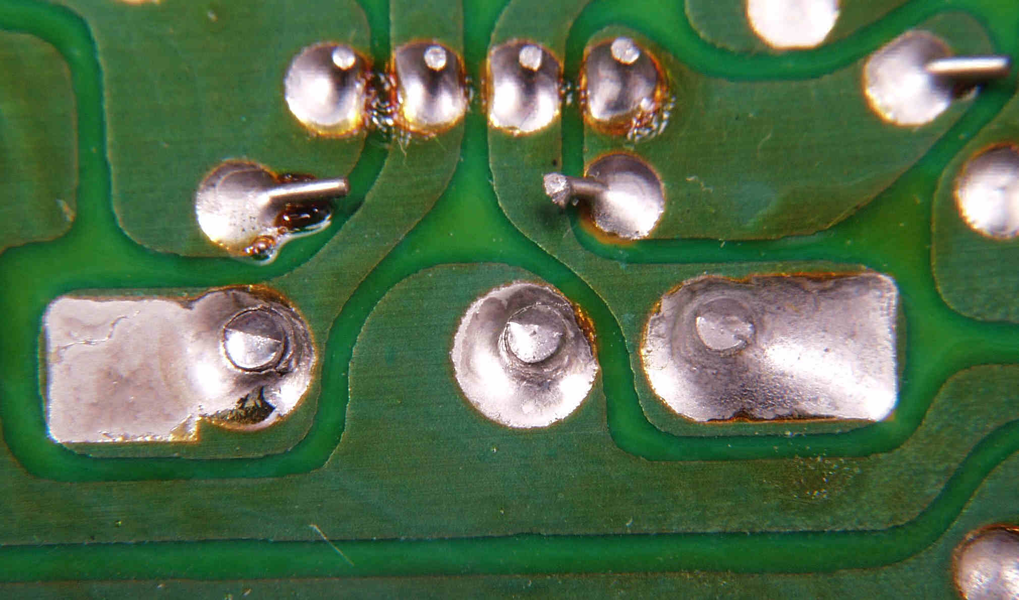 C2F−1. 修理前 EQ−AMP基板裏 ハンダ不良ヶ所、その1