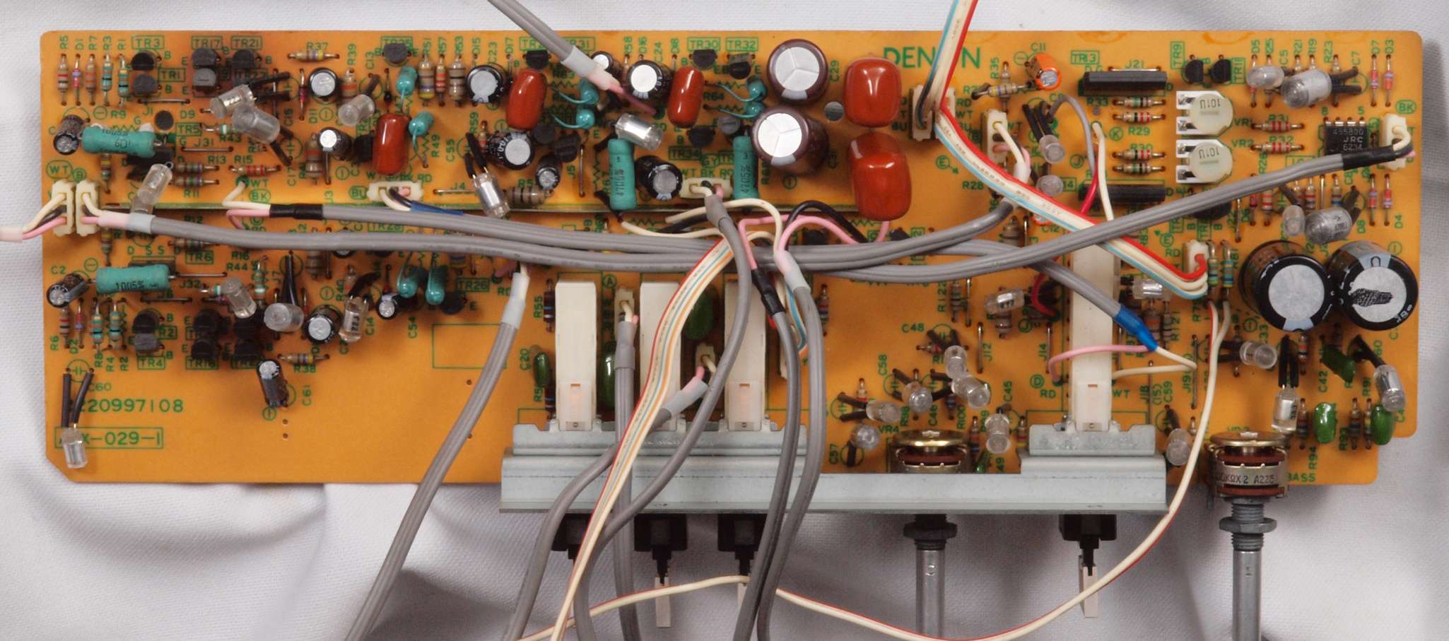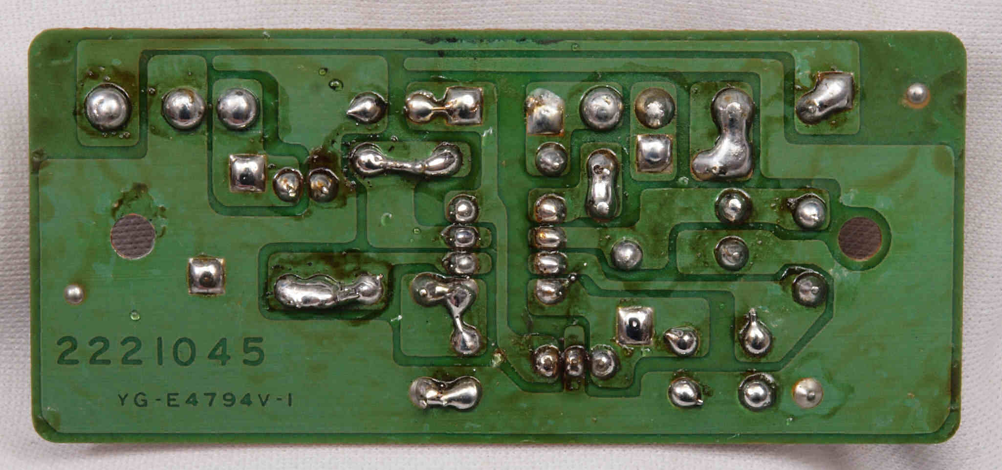 | C212. 修理中 EQ−AMP基板。 トルエン溶媒の接着剤。錫メッキジャンパー線が腐食している。 | ||||||||||||||||||||||||||||||||||||||||||||||||||||