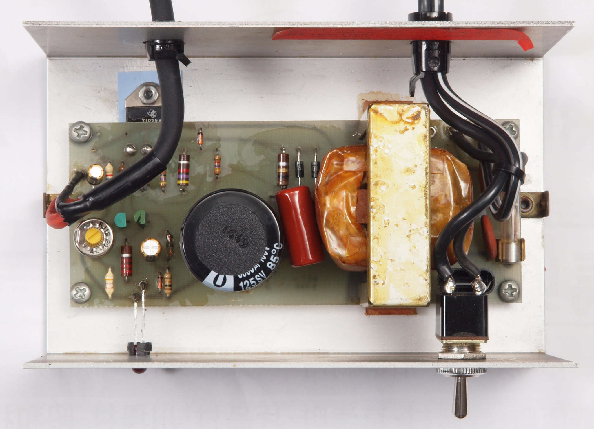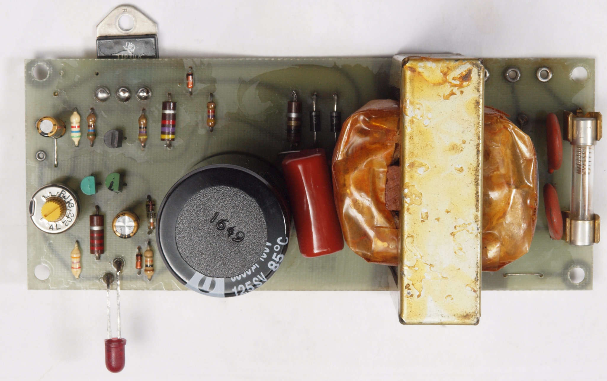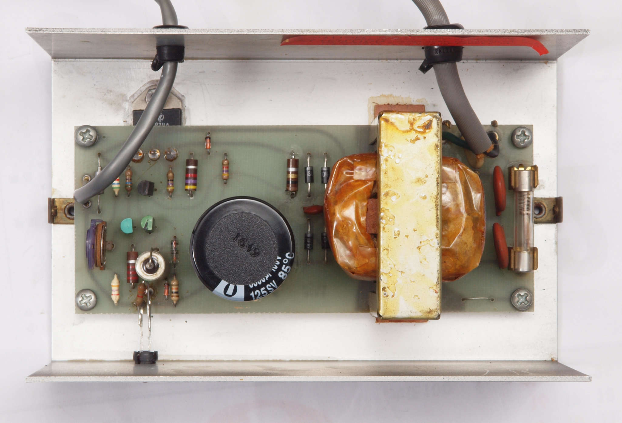 | A36. 電源部点検中 上ケースから取出し、上から見る。 1部電解コンデンサーが交換されている。 | ||||||||||||||||||||||||||