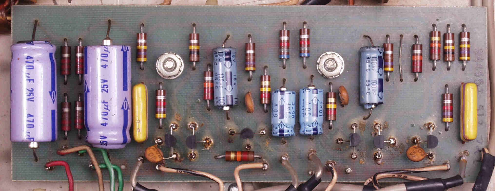 | C32. 修理後 初段基盤 電解コンデンサー6個交換 | ||||||||||||||