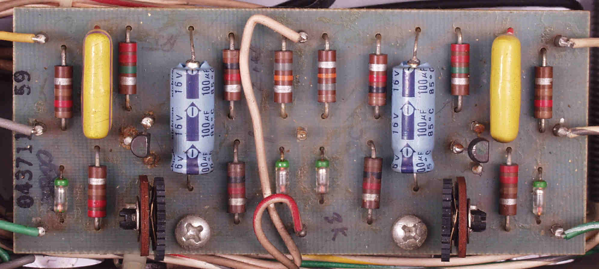 | C42. 修理後 VU−AMP基盤 電解コンデンサー2個、半固定VR2個交換 | ||||||||||||||
