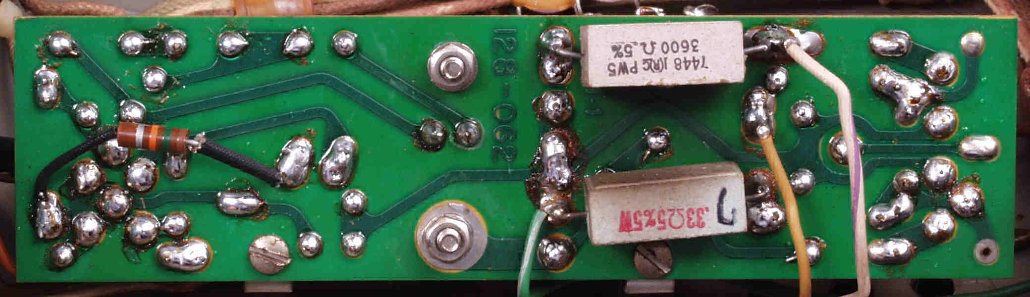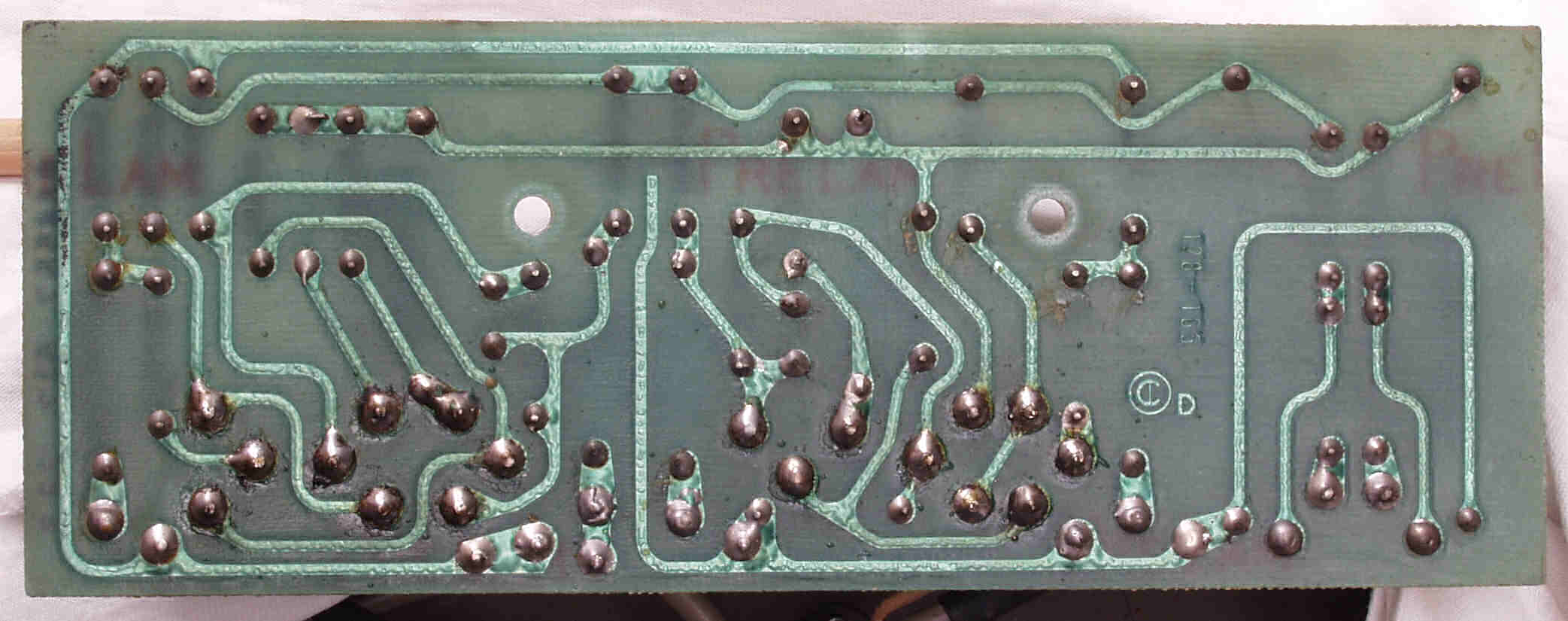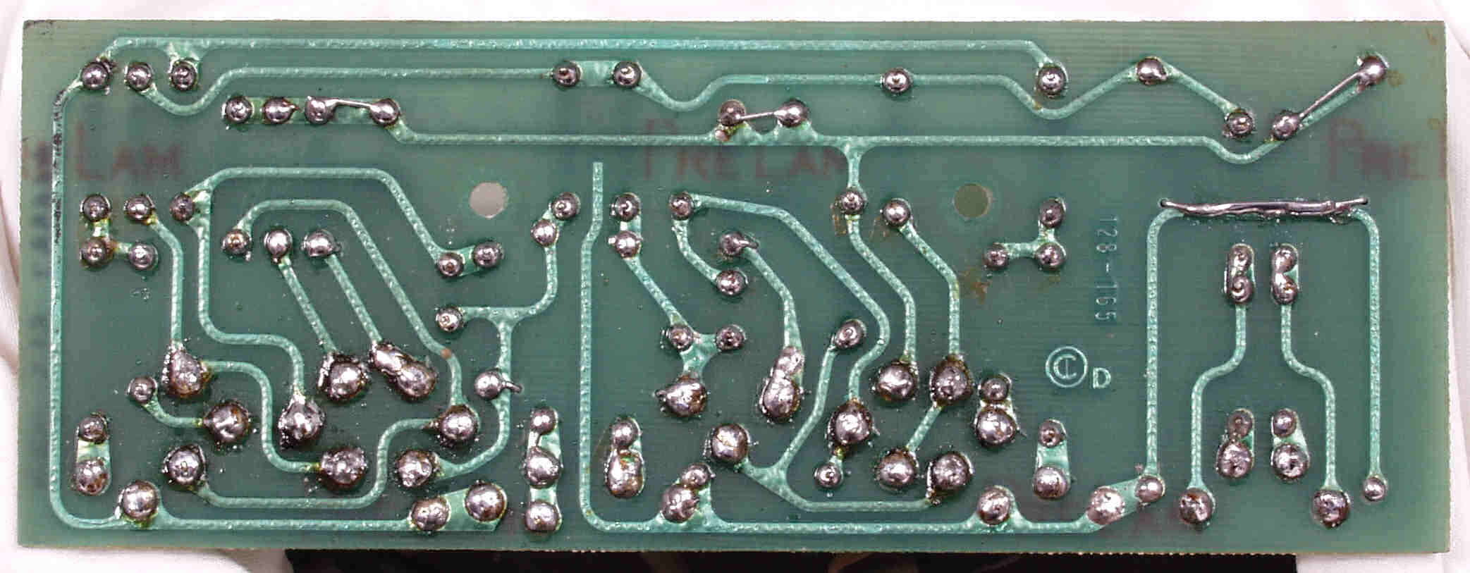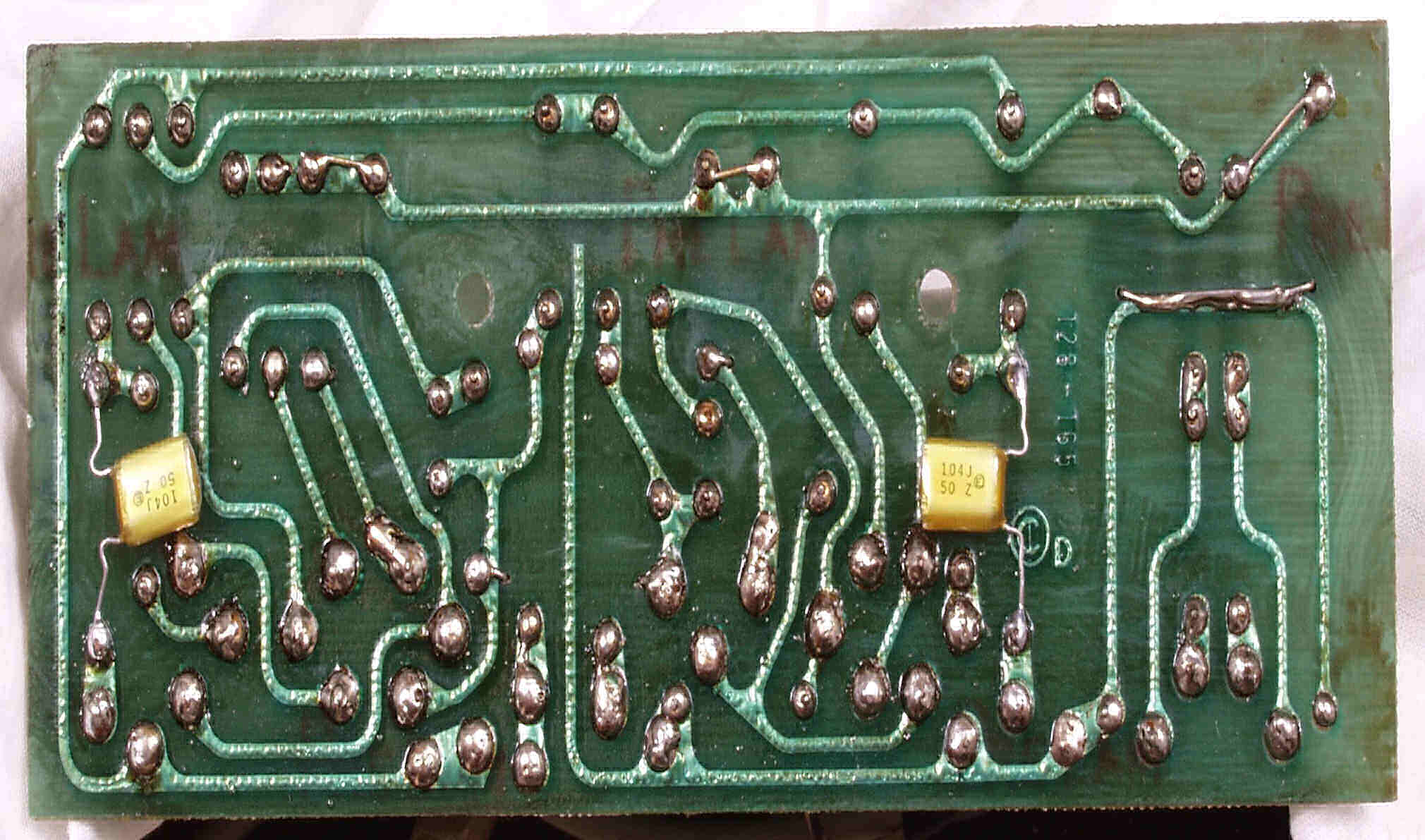 | C34. 修理(半田補正)後 初段基盤裏。 半田を全部やり直す。 | ||||||||||||||