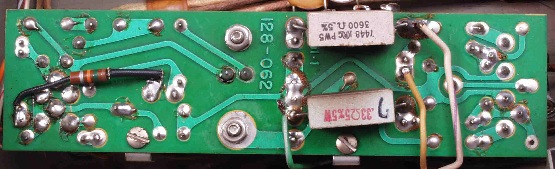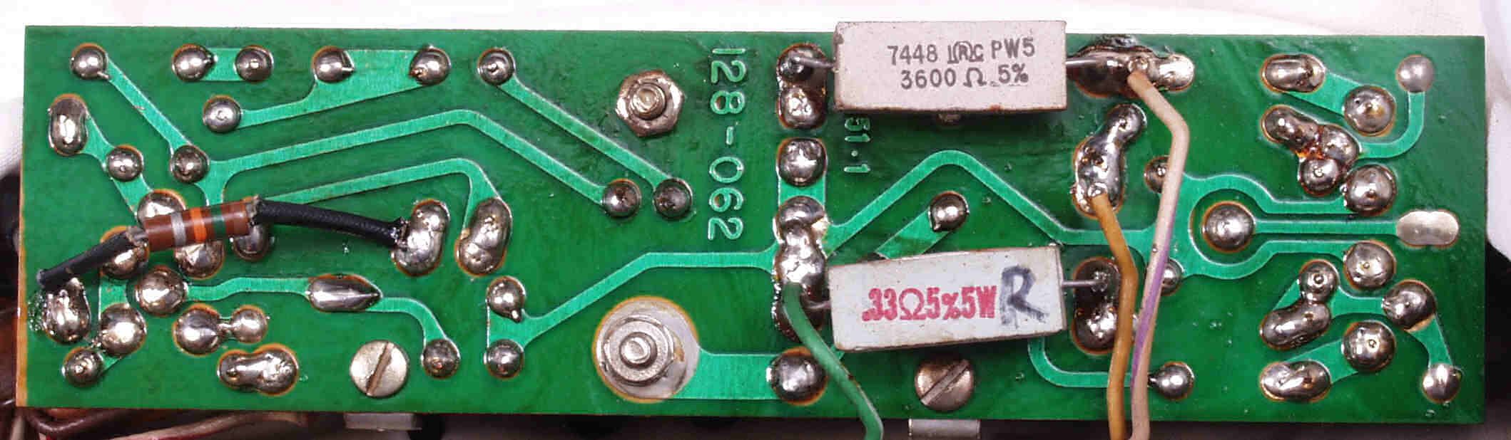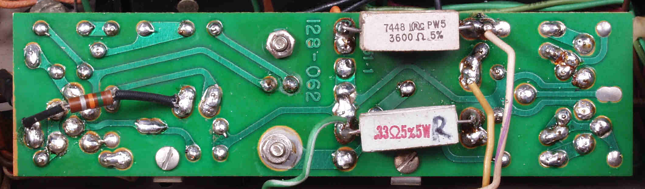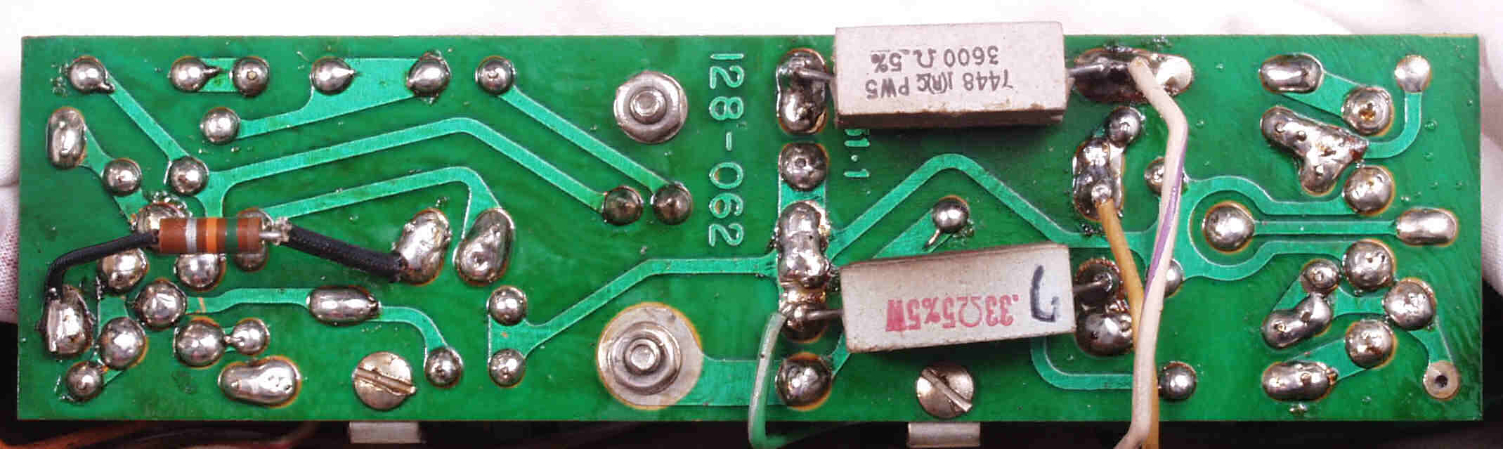| C34. 修理(半田補正)後 初段基盤裏。 半田を全部やり直す。 | ||||||||||||||