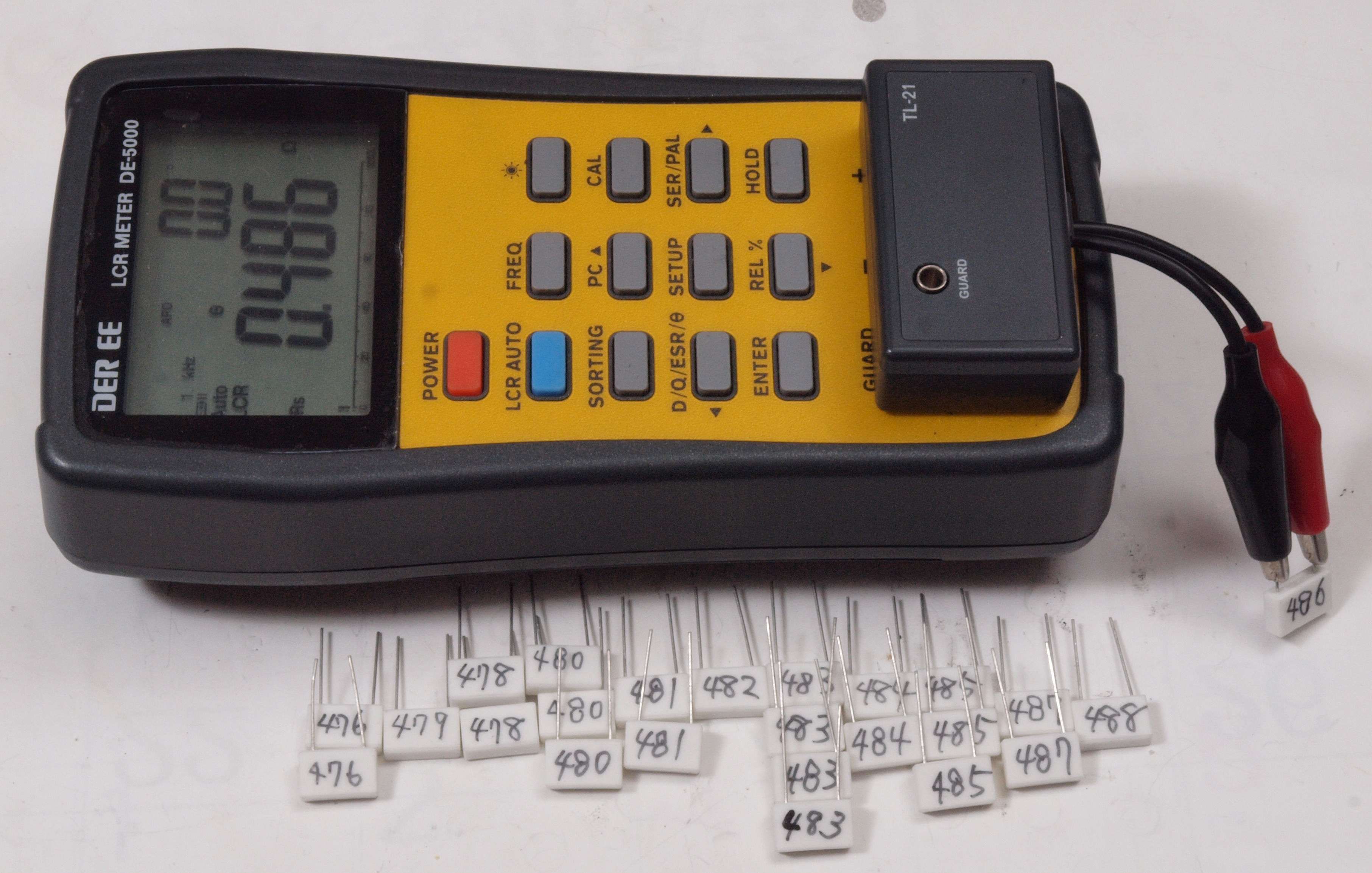 | A81. 終段TR(トランジスター)のエミッター抵抗(低歪タイプ)は測定して選別使用。福島双羽電機(株)製。 483を4本選択する。 |