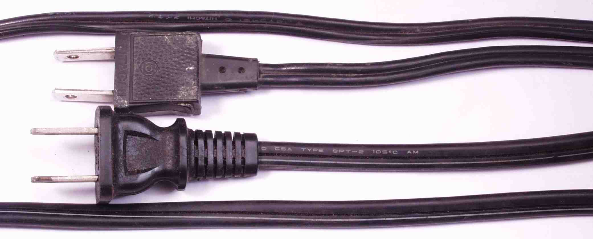 A7. 修理前見積り点検中。 ACコードの比較。 上=付いている物。 下=交換する物