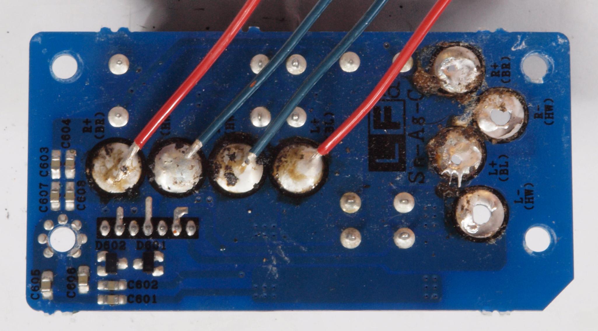| CA2. 修理中 3Pインレット、SP出力接続端子裏。 |