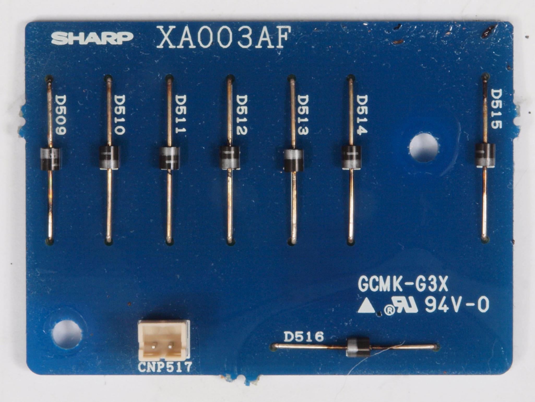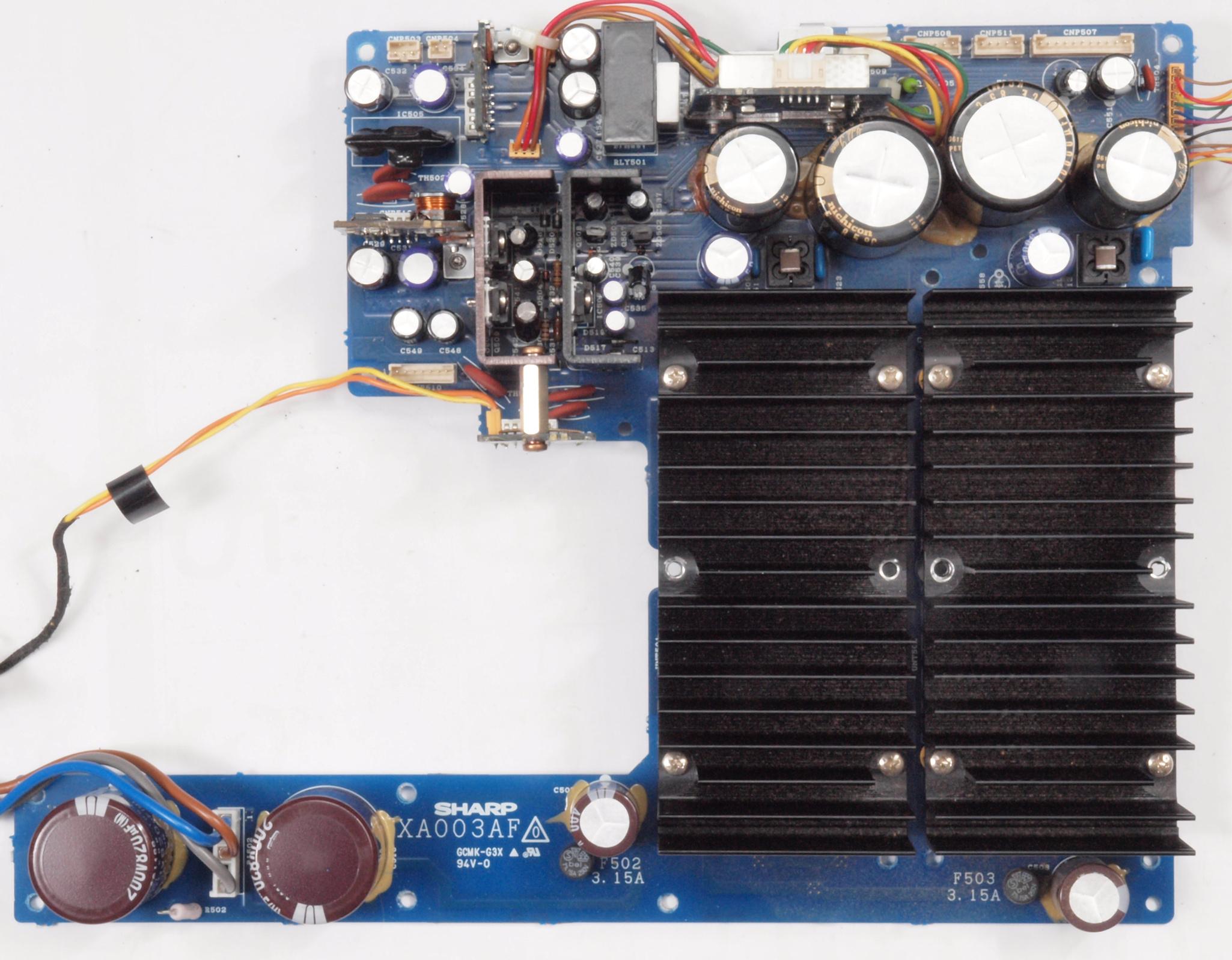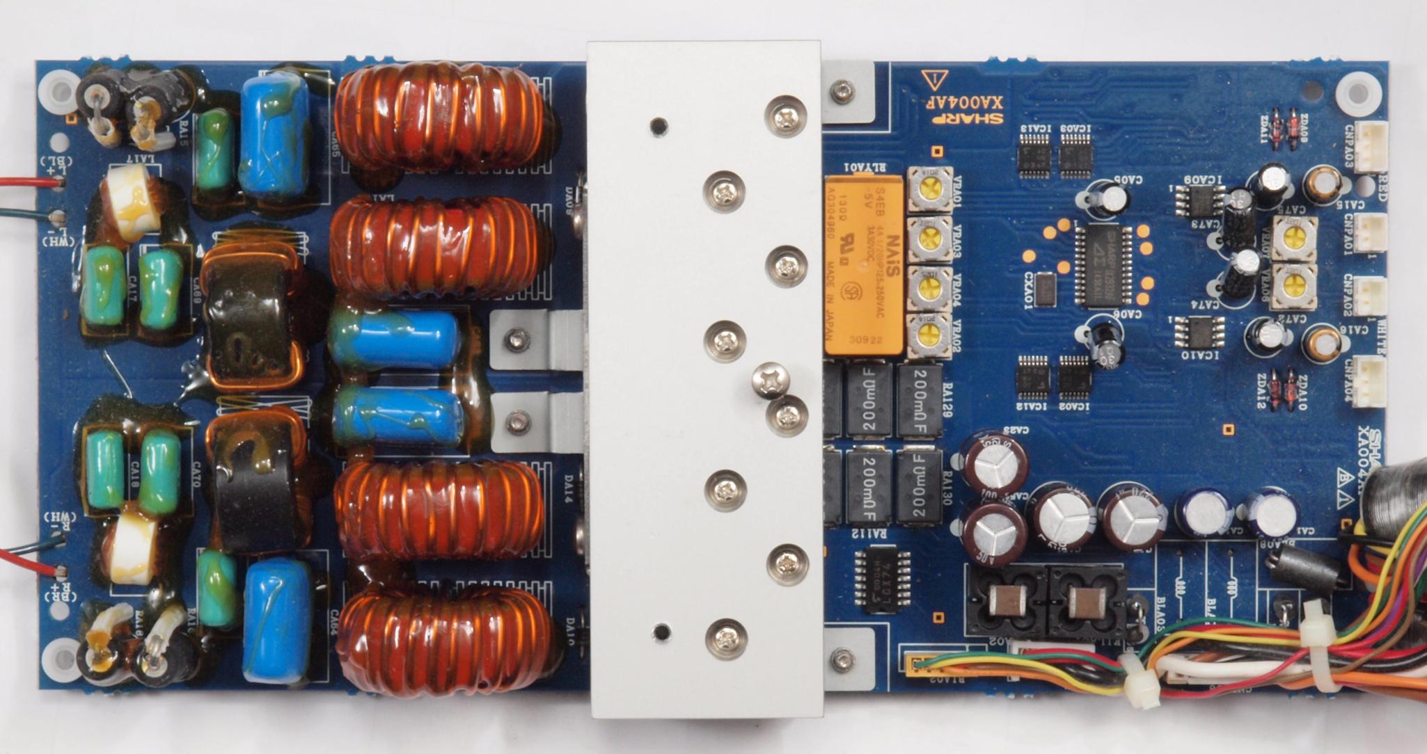 | C51. 修理中 電源フイルター基板。 電源ヒューズは15A、 100V×15A=1.5KVA。 |