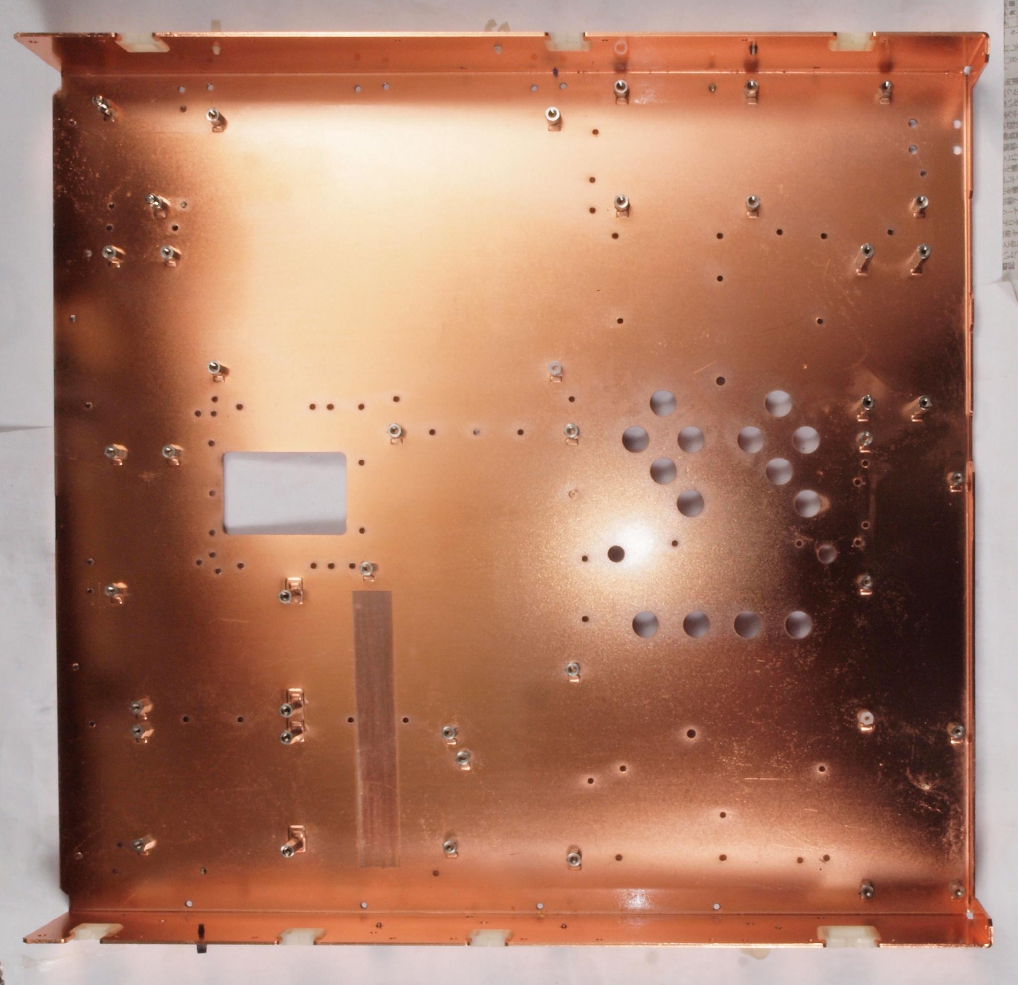| C01. 修理中 部品・基板を取り去ったシャーシ裏。清掃後CRCで拭く。 |