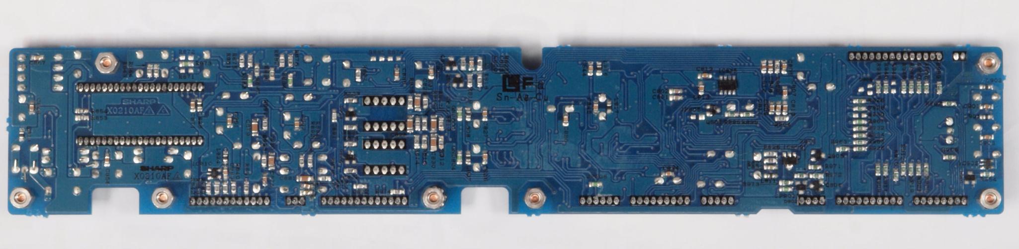 | C. 修理状況。 画像をクリックすると、大きく(横幅2050ドット)表示されます。 C0. 修理中 部品・基板を取り去ったシャーシ裏。埃が入っている。 |