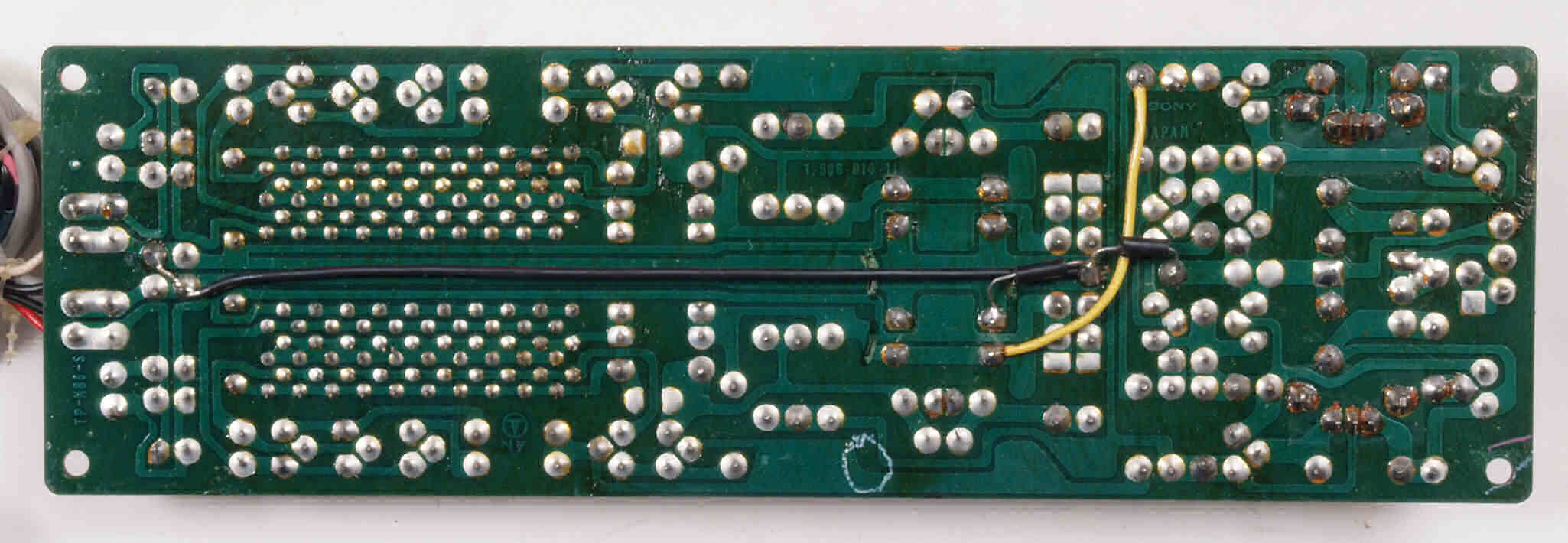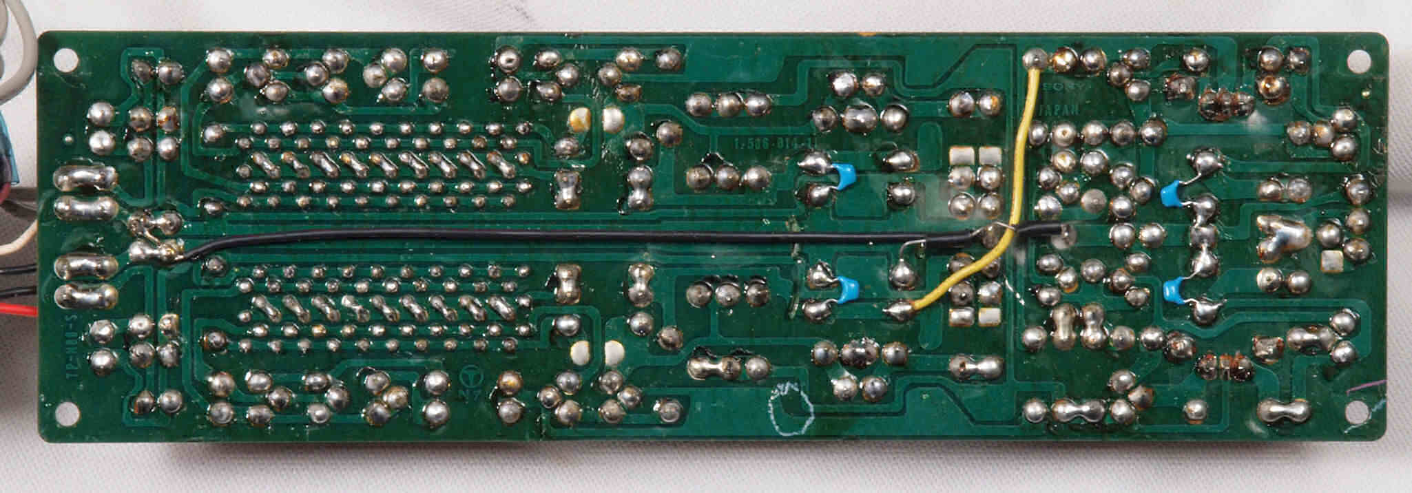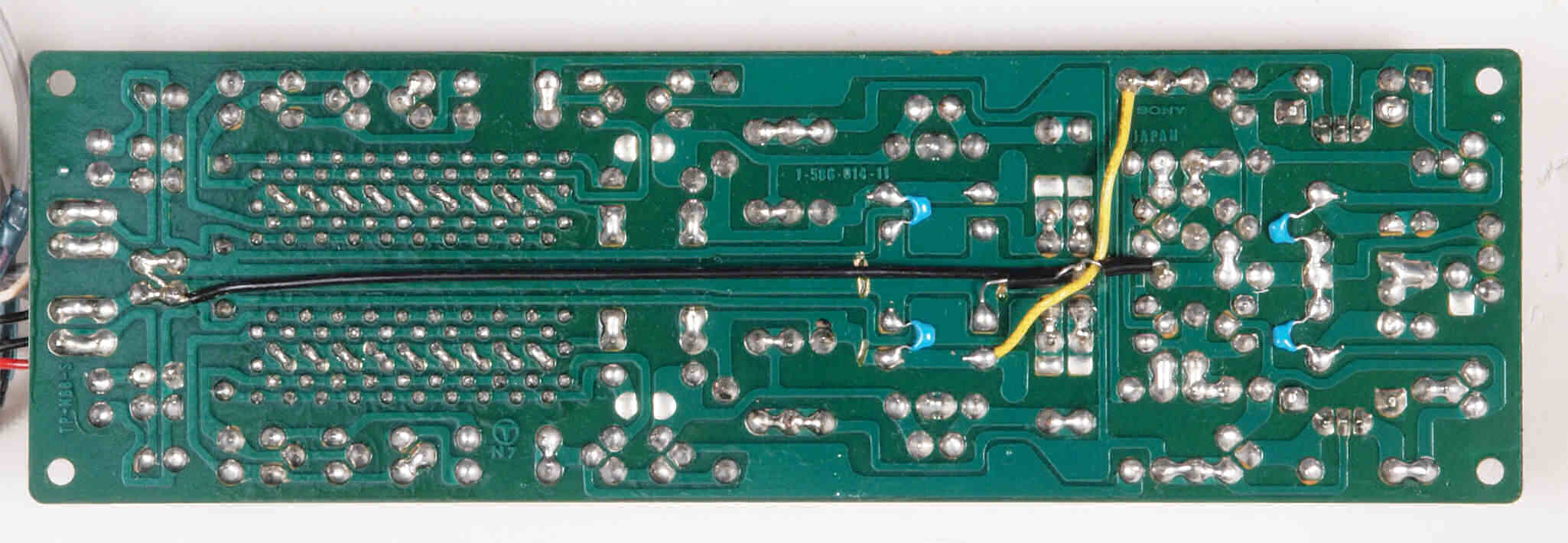 C54. 修理(半田補正)後 テープモニター基板裏。  全ての半田をやり修す