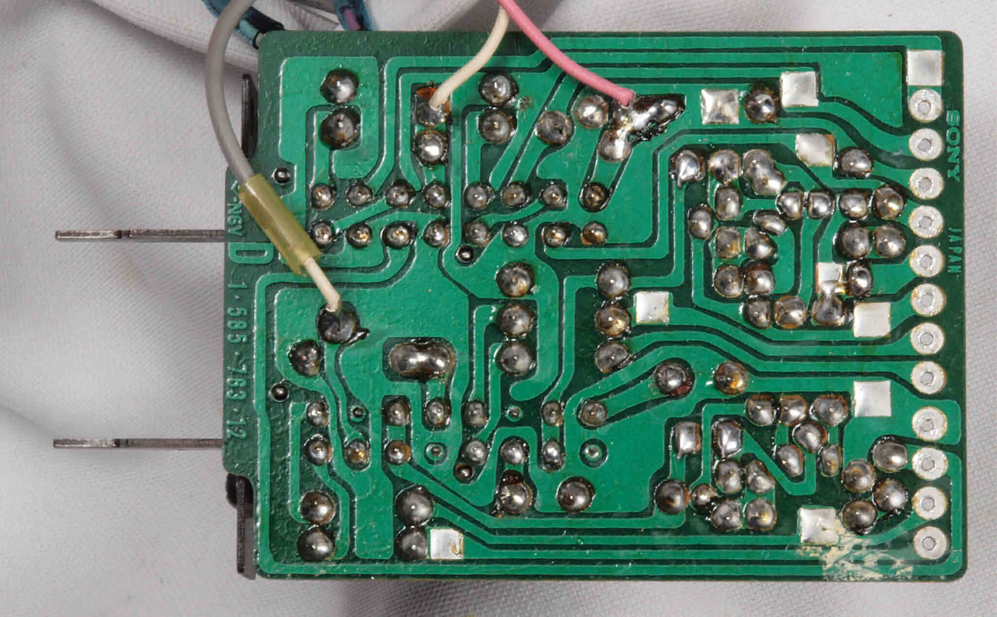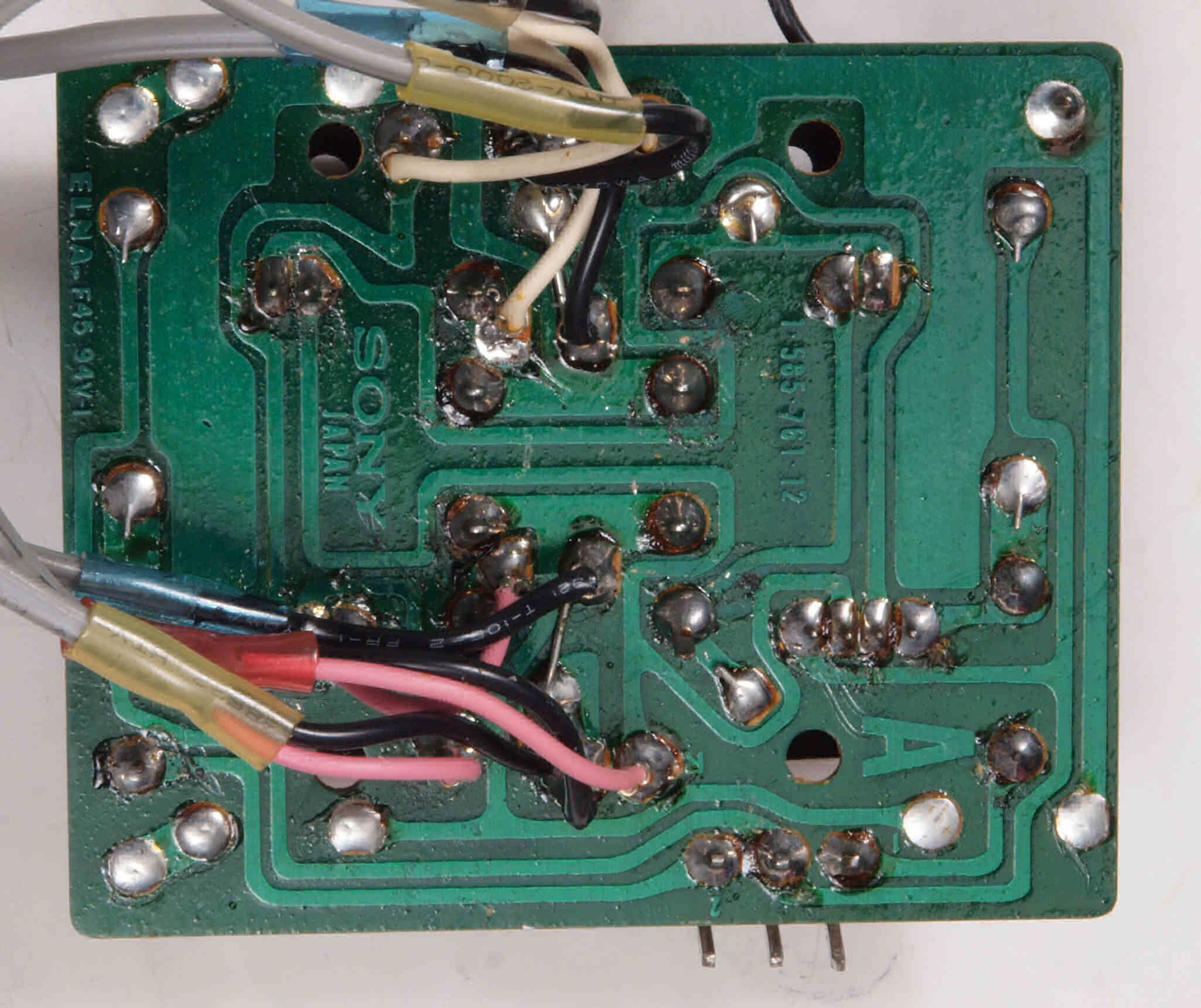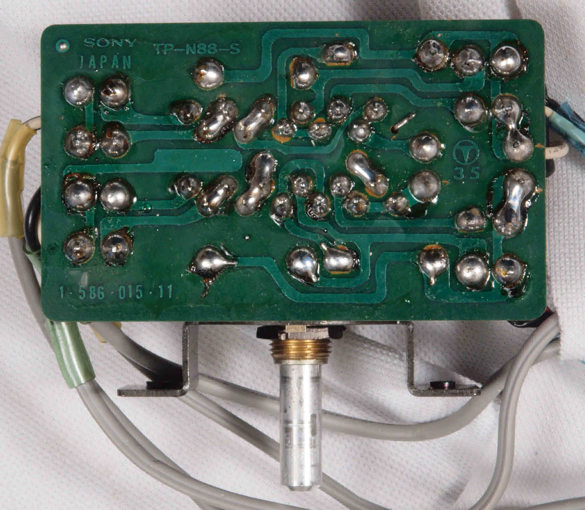C54. 修理(半田補正)後 テープモニター基板裏。  全ての半田をやり修す