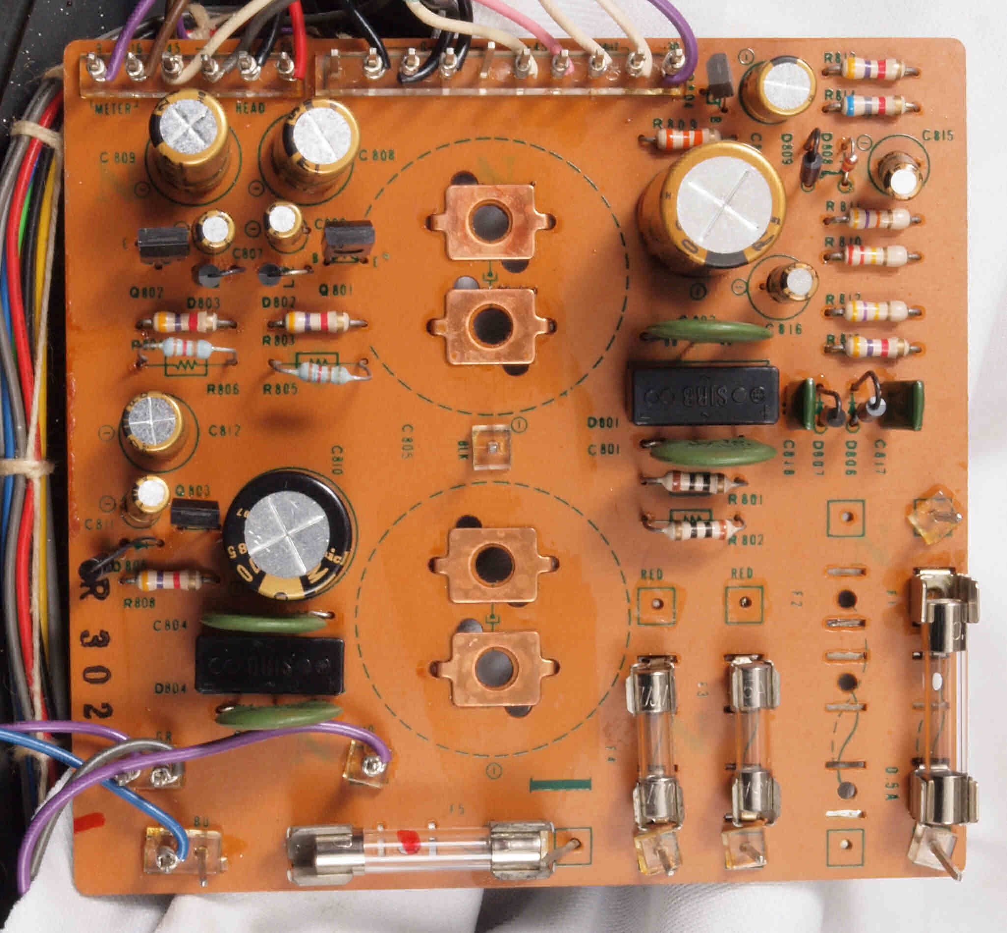 C52. 修理後 テープモニター基板。 電解コンデンサー2交換。