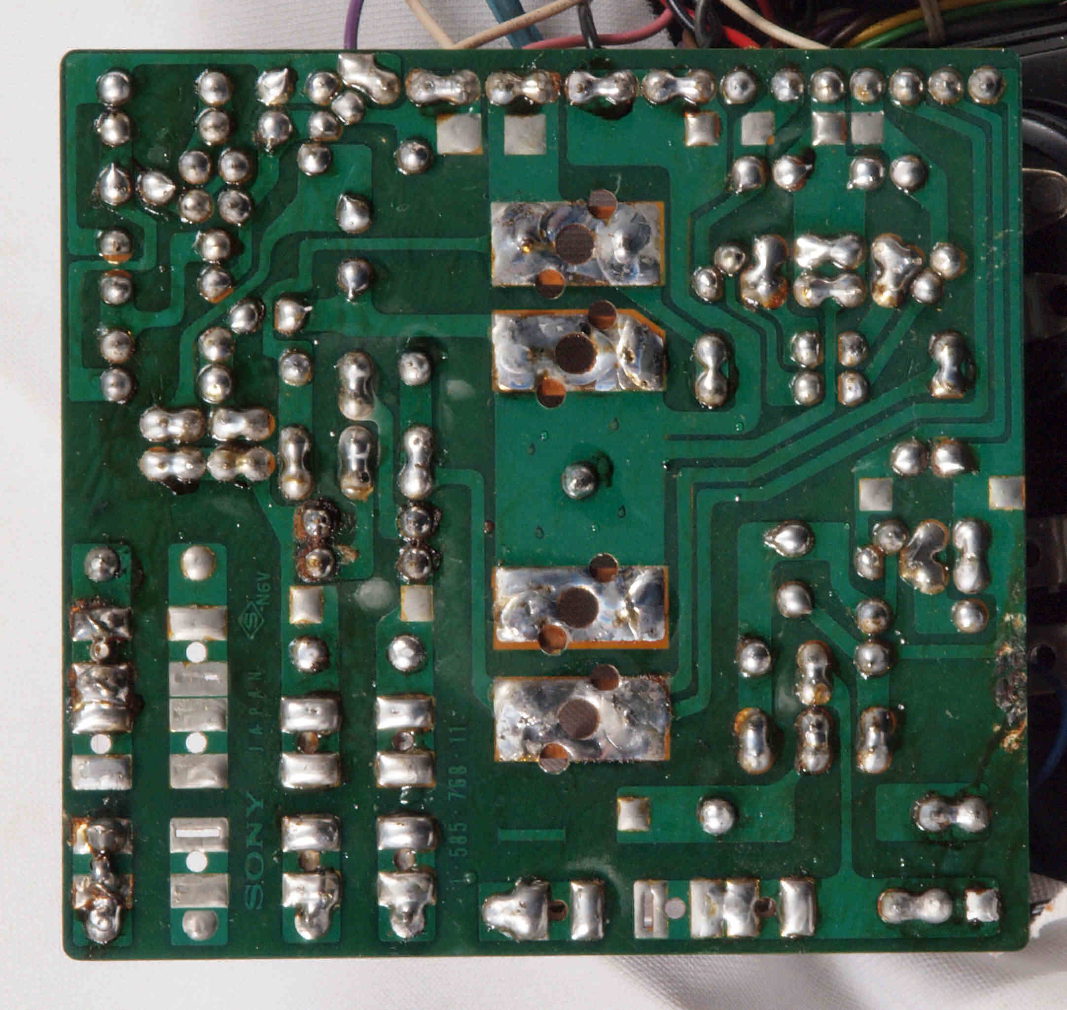 C74. 修理(半田補正)後 コントロール(Control)基板裏。  全ての半田をやり修す