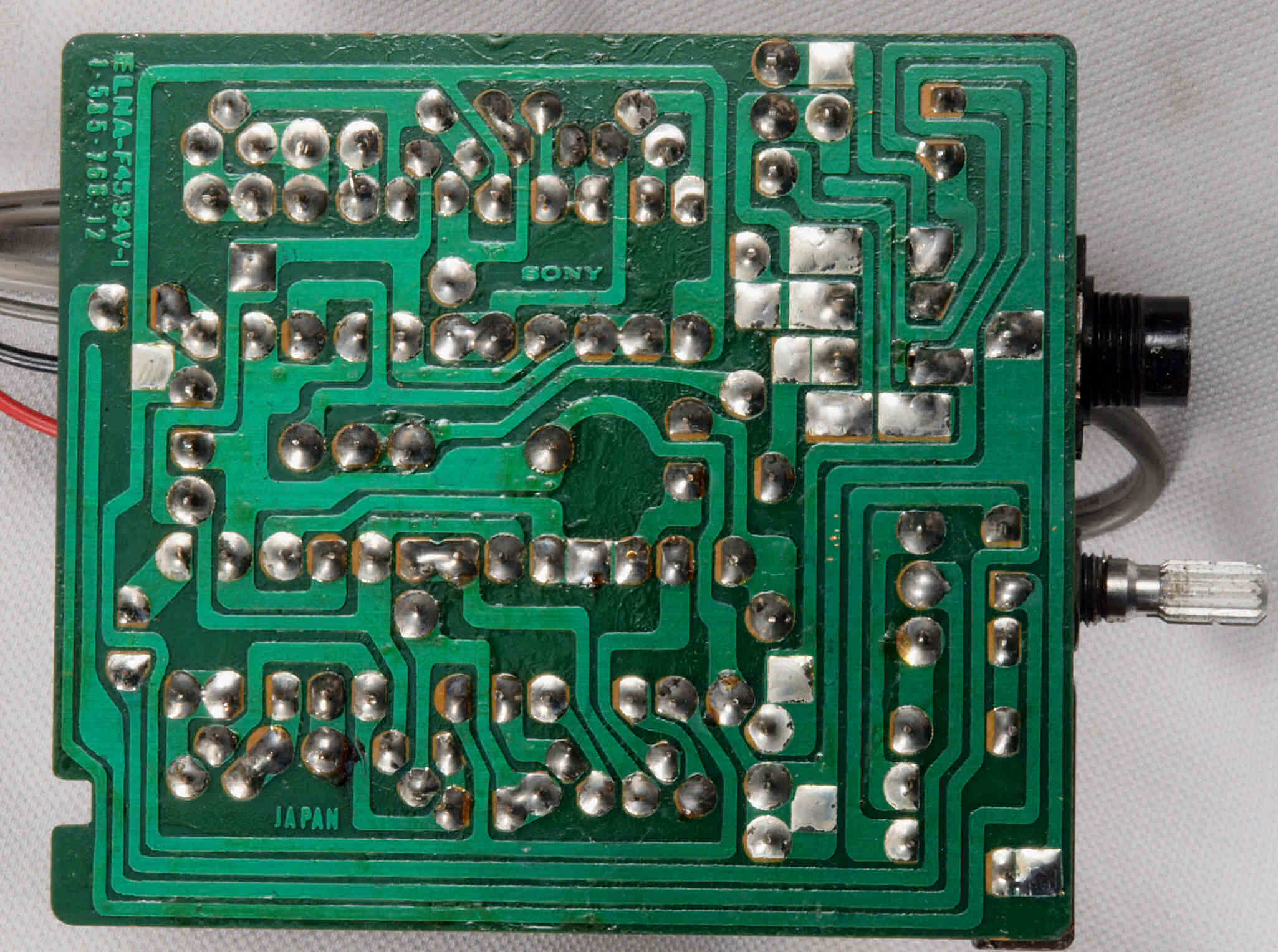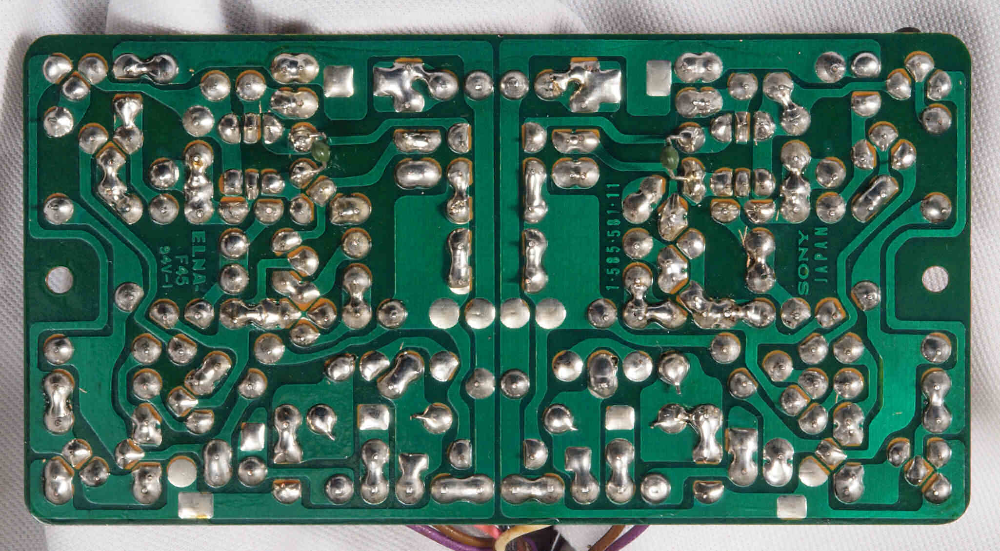 C94. 修理(半田補正)後 ヘッドホーンAMP基板裏。  全ての半田をやり修す