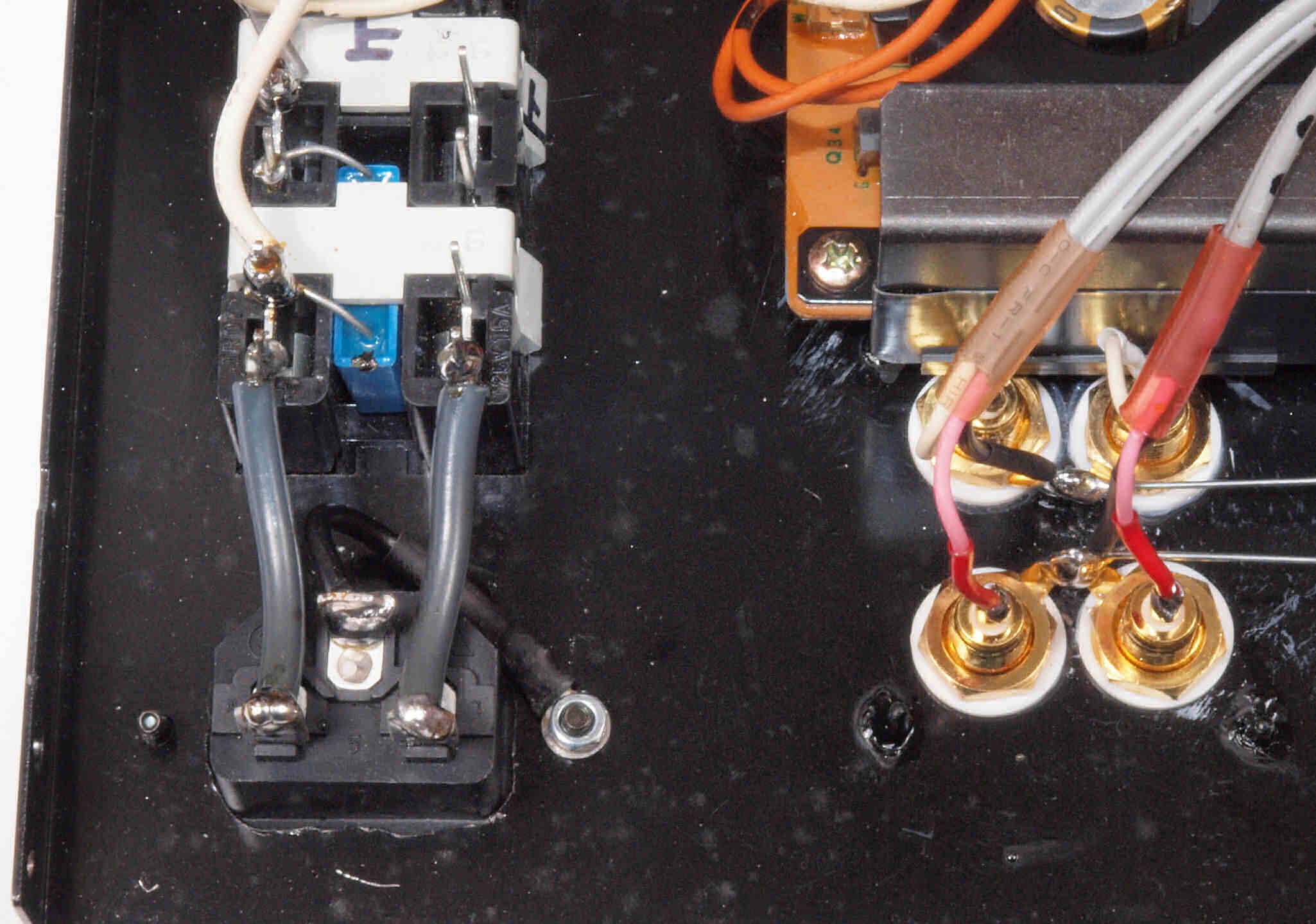 A52. 点検中 出力RCA端子。  テフロン絶縁型と交換。