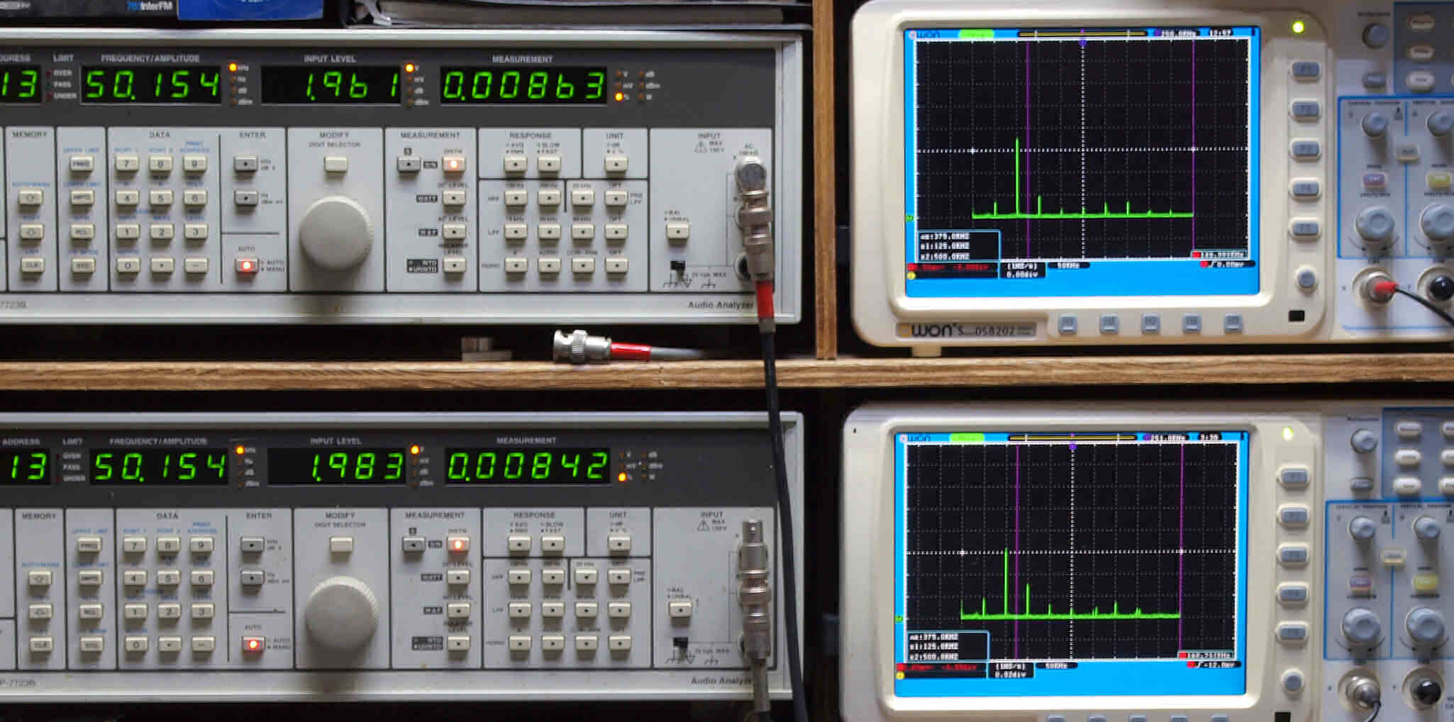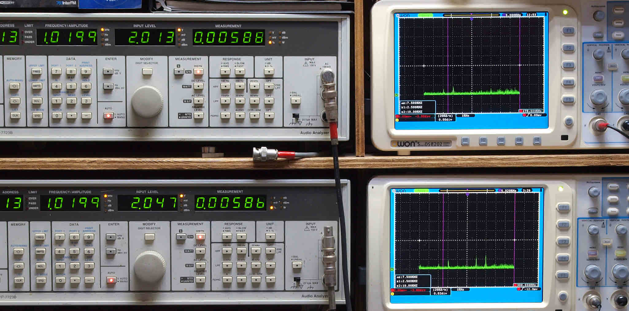 よって、ダイアル設定出力レベルより低くなります。測定機器の仕様や整備の様子はこちら、「VP−7723B」「VP−7201A」。 FFT画面の見方はこちら。