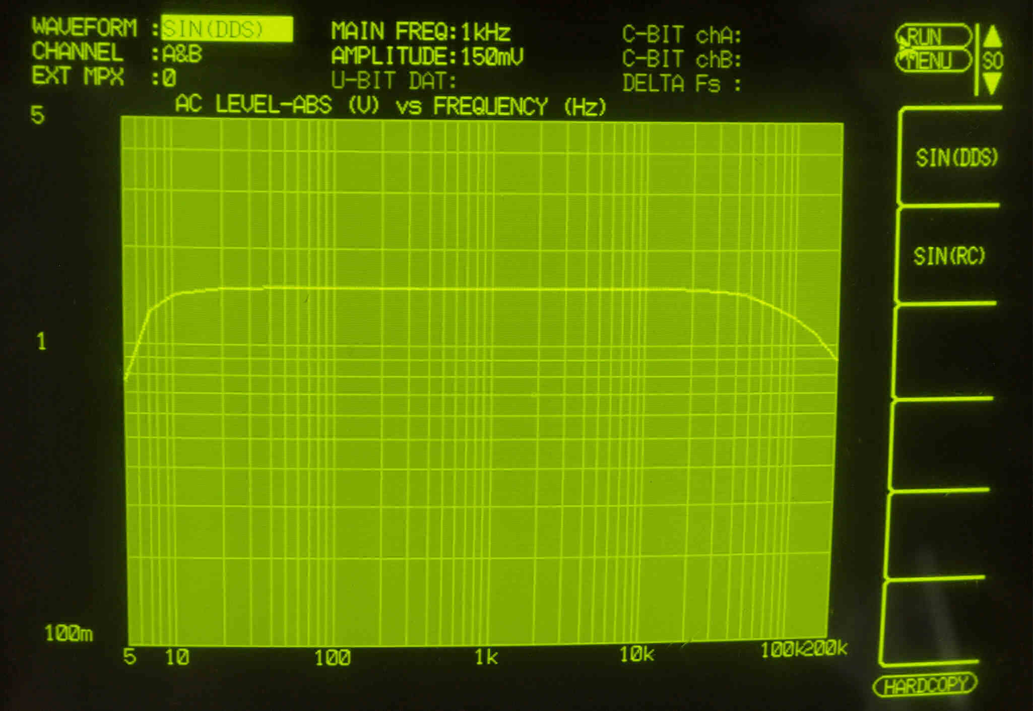 F5. 入出力特性測定(AUX入力) BASS(150Hz) & TREBLE(8kHz) 最小。