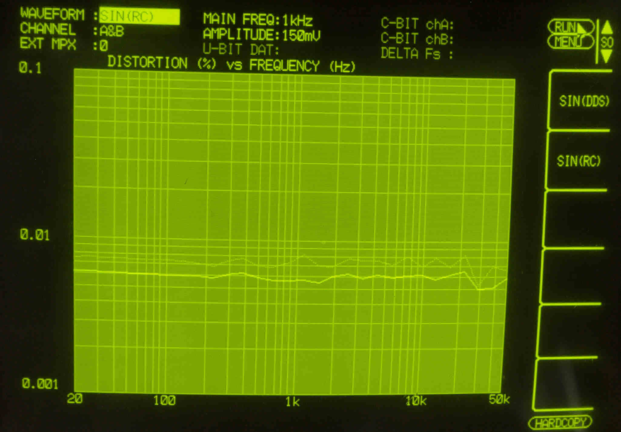 E27. MM 50kHz入力、R側出力電圧=2V、 0.0238%歪み。