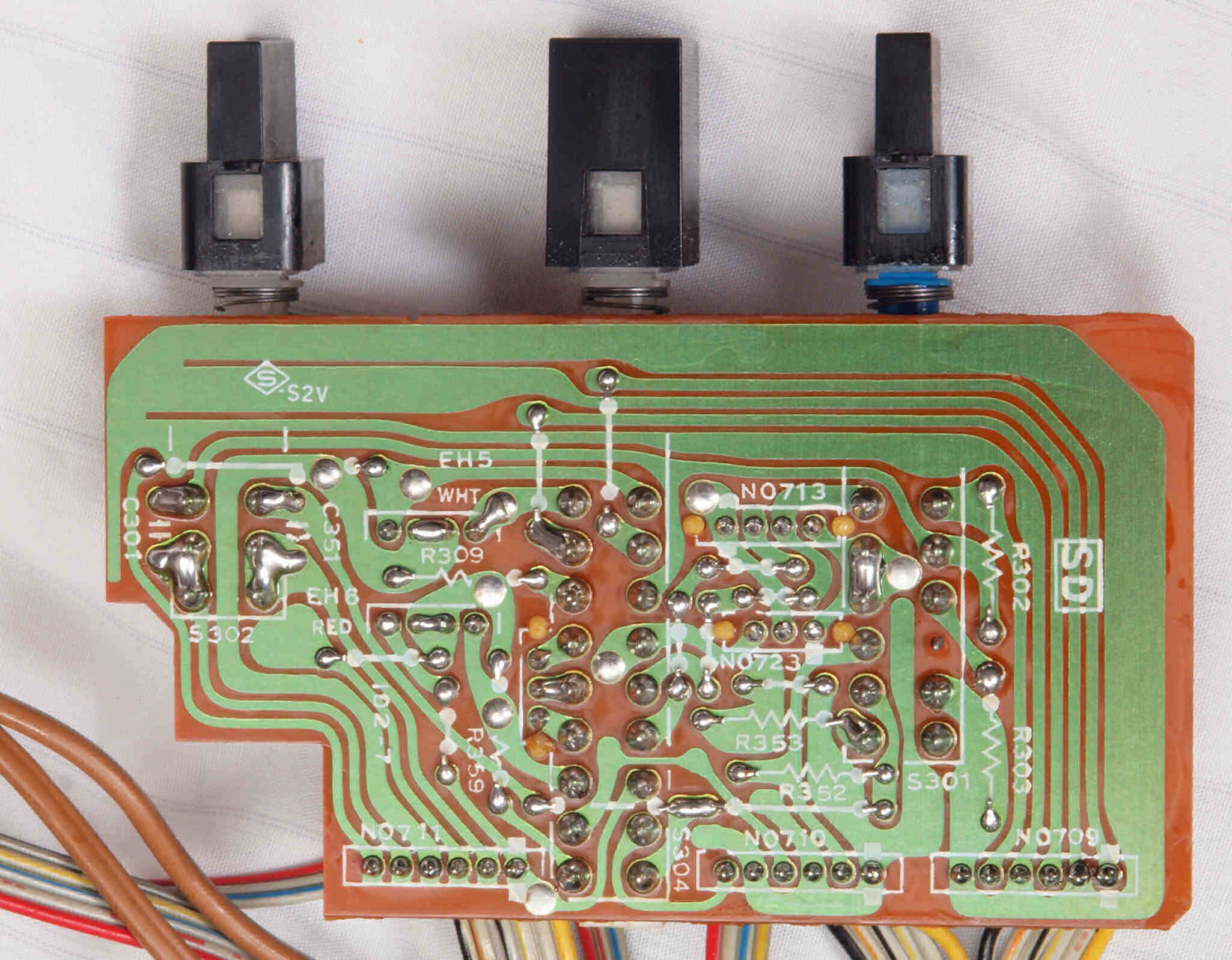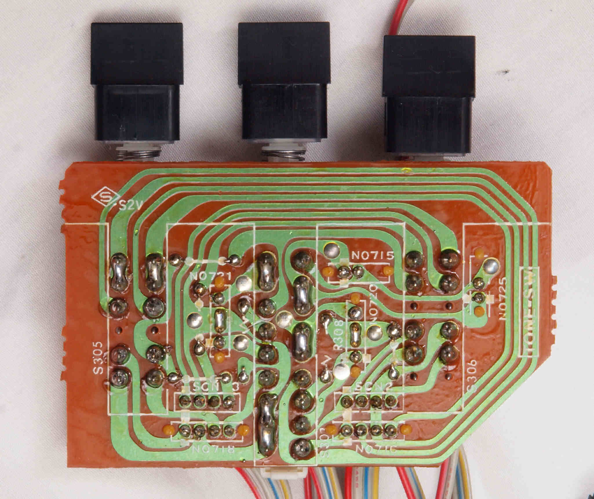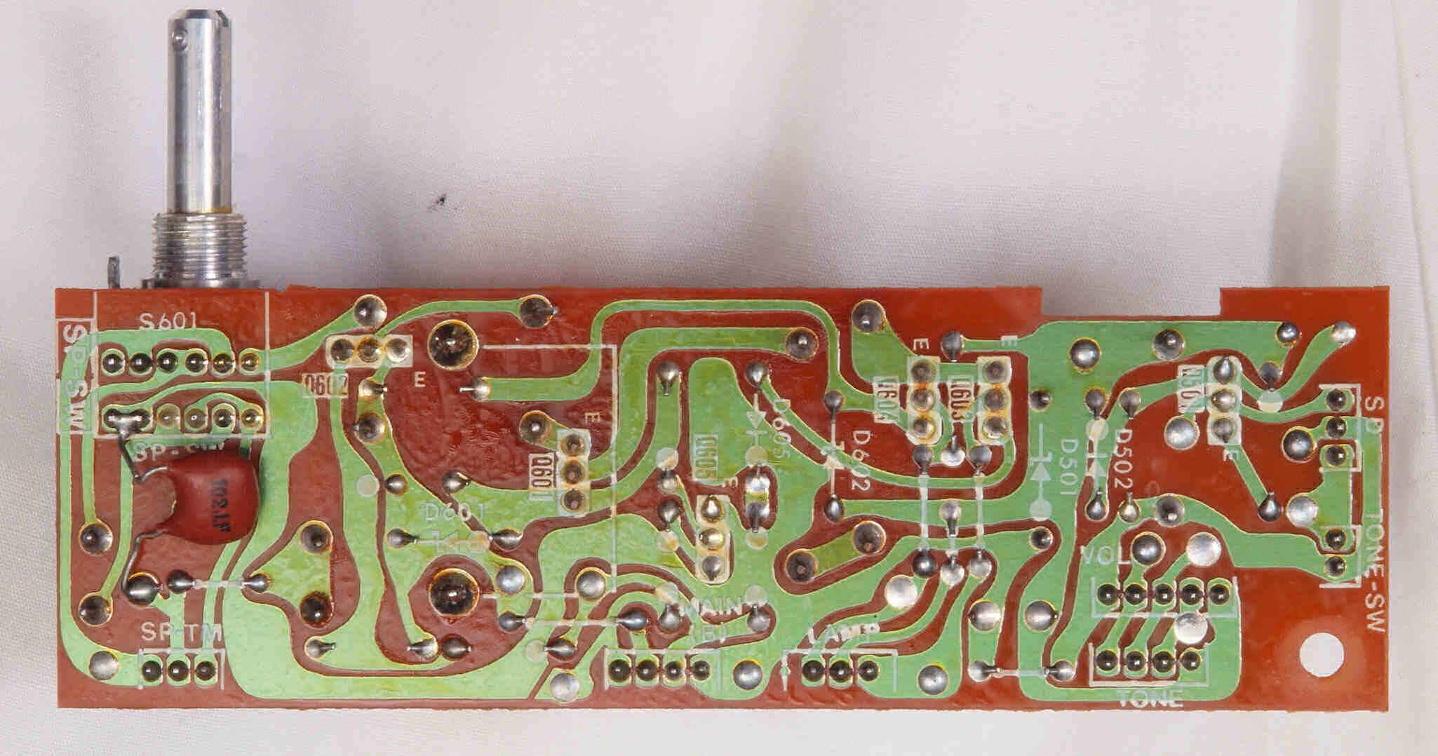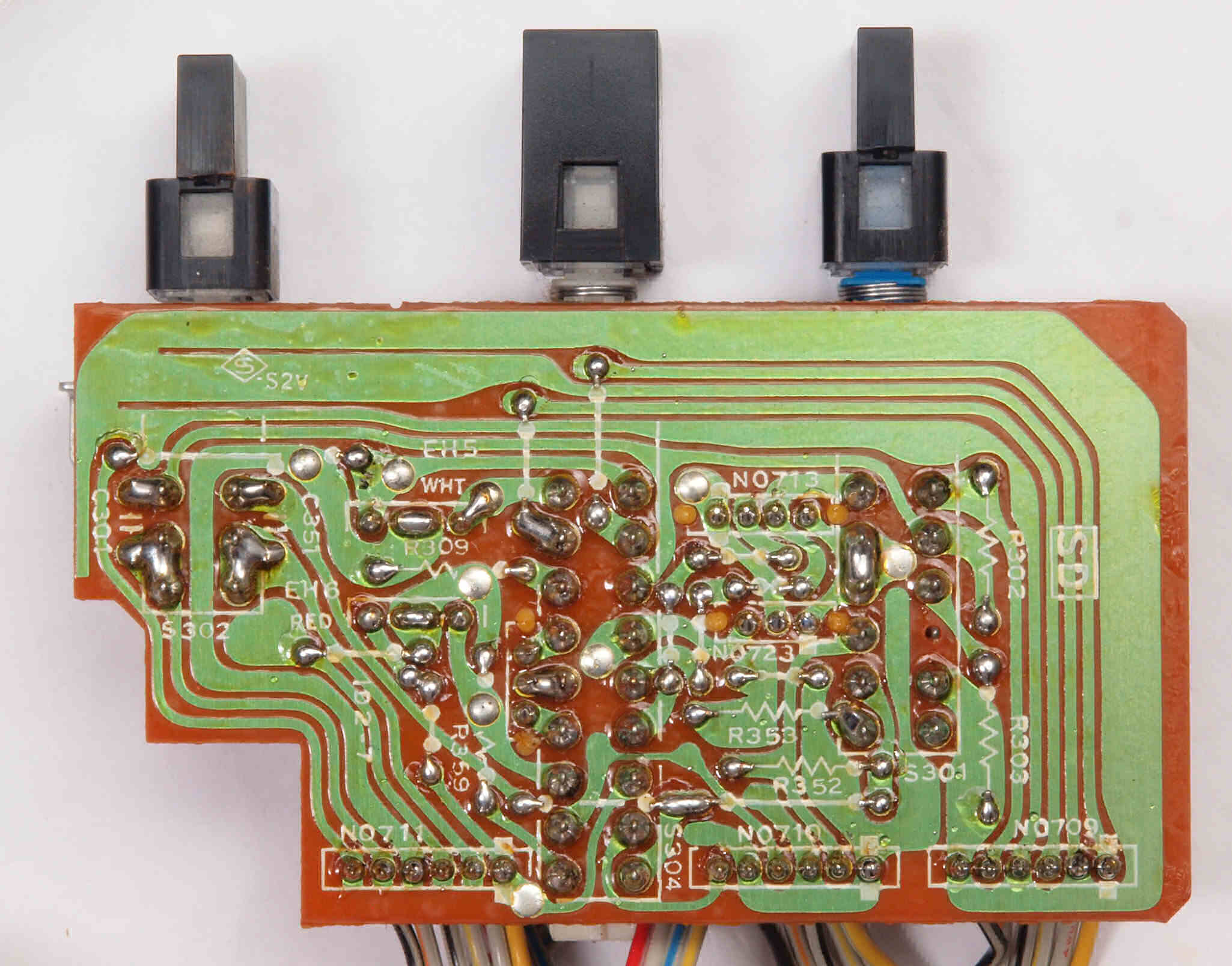 C63. 修理(半田補正)後 TONE−SW基板裏、  全ての半田をやり修す