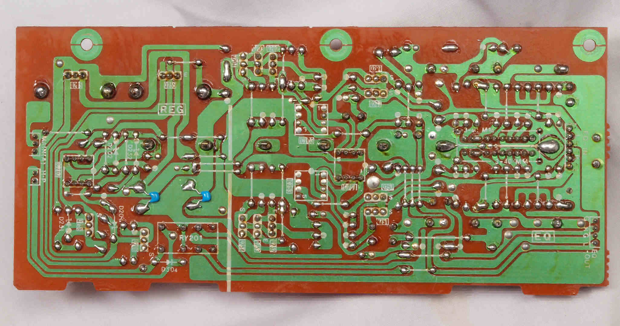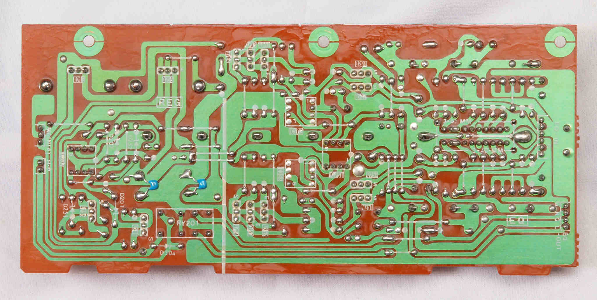 C34. 修理(半田補正)後 EQ−AMP基板裏。 全ての半田をやり修す。