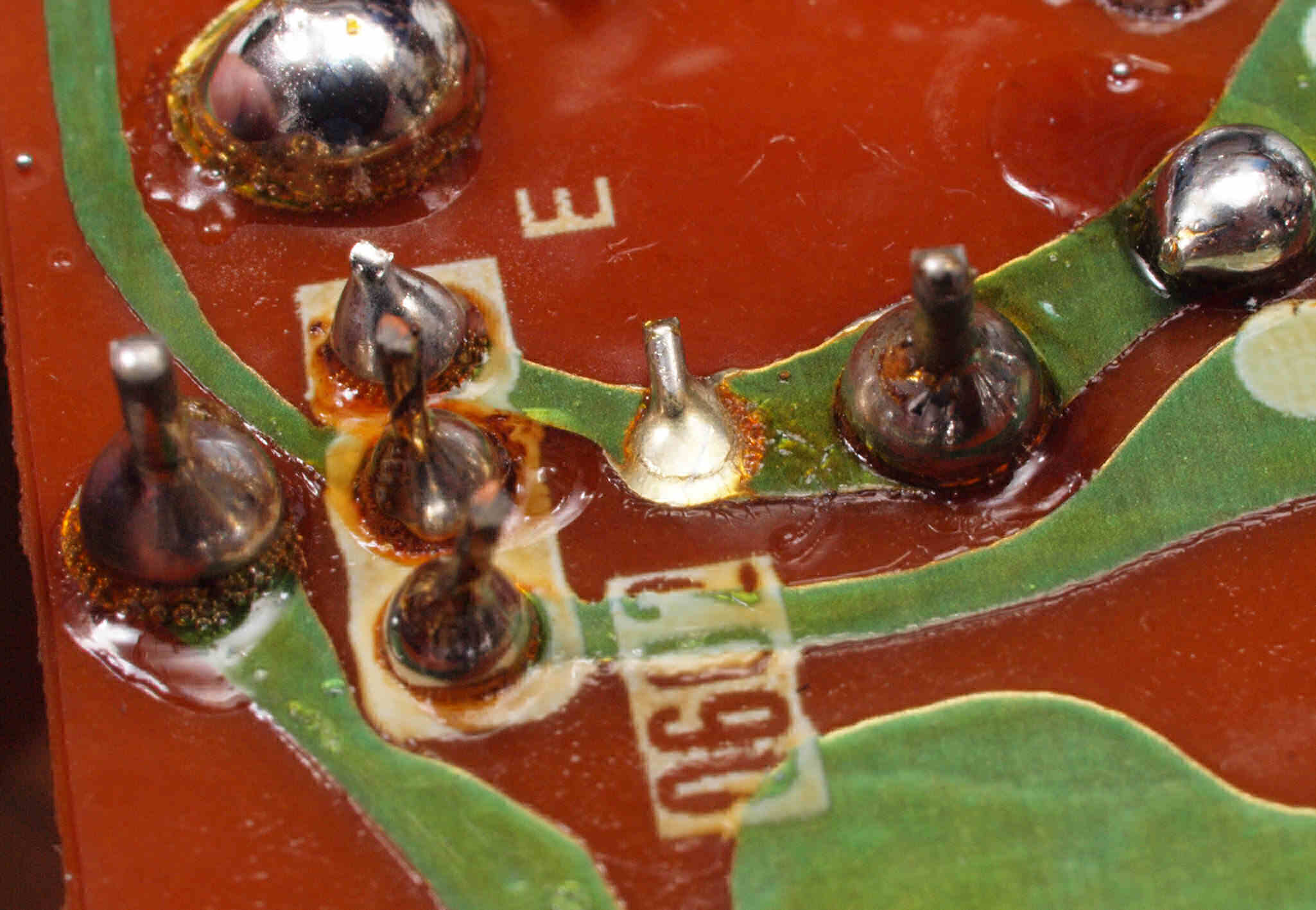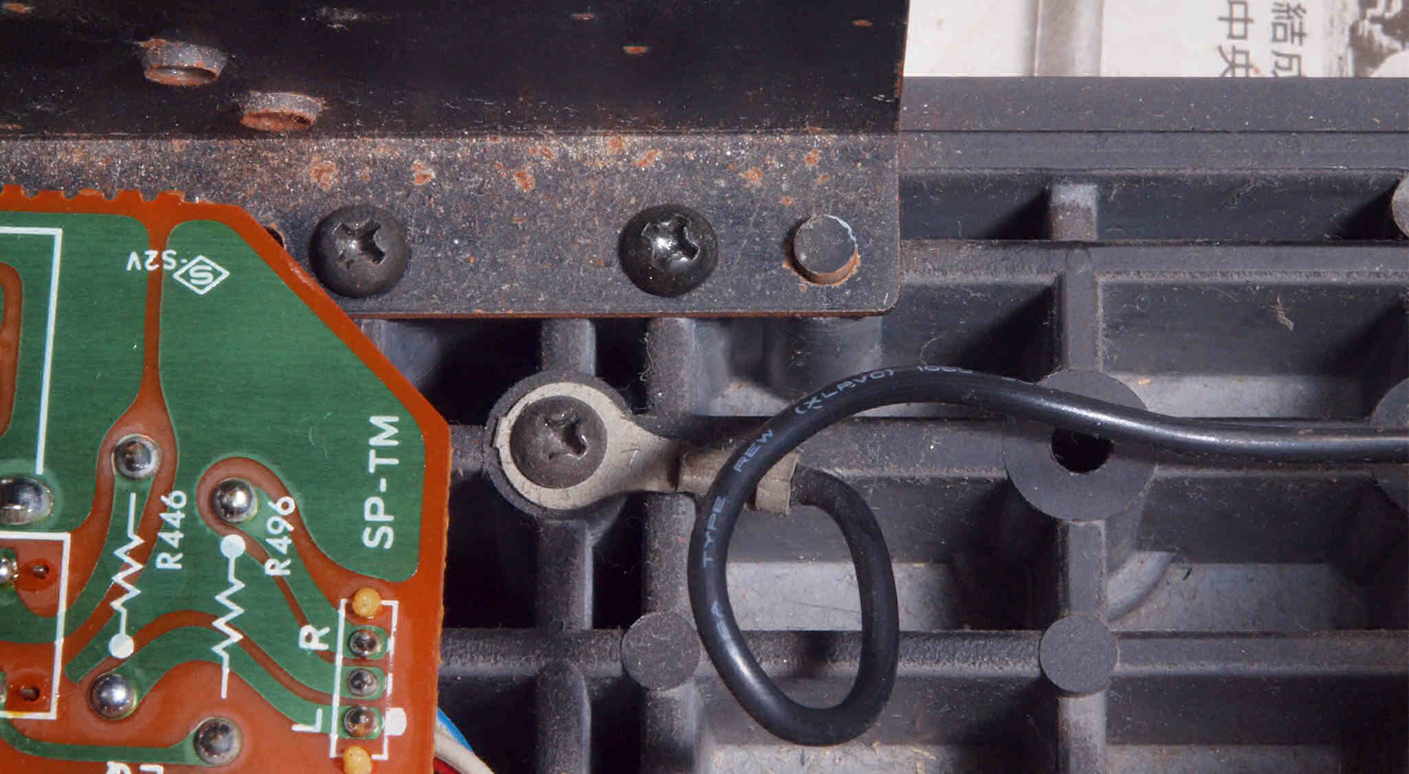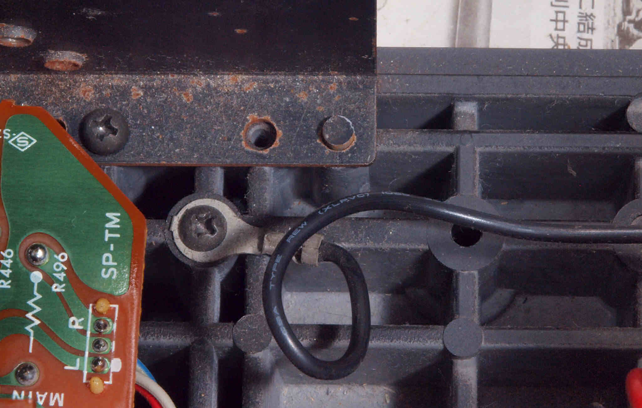 CI2. 修理中 SP出力端子裏 使用済み吸い取り線で補強する。