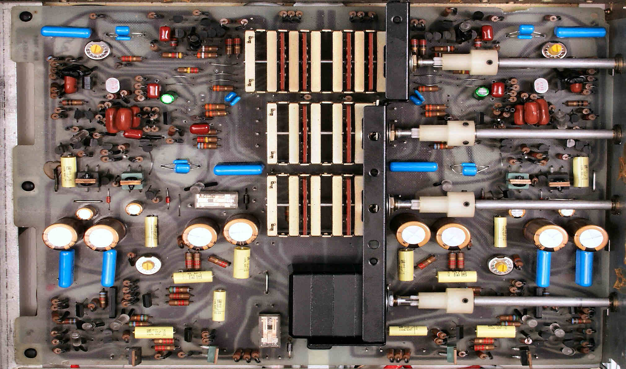 A1B. 点検中 上から見る。Λコンデンサーは、上面に37個、底面に4個。
