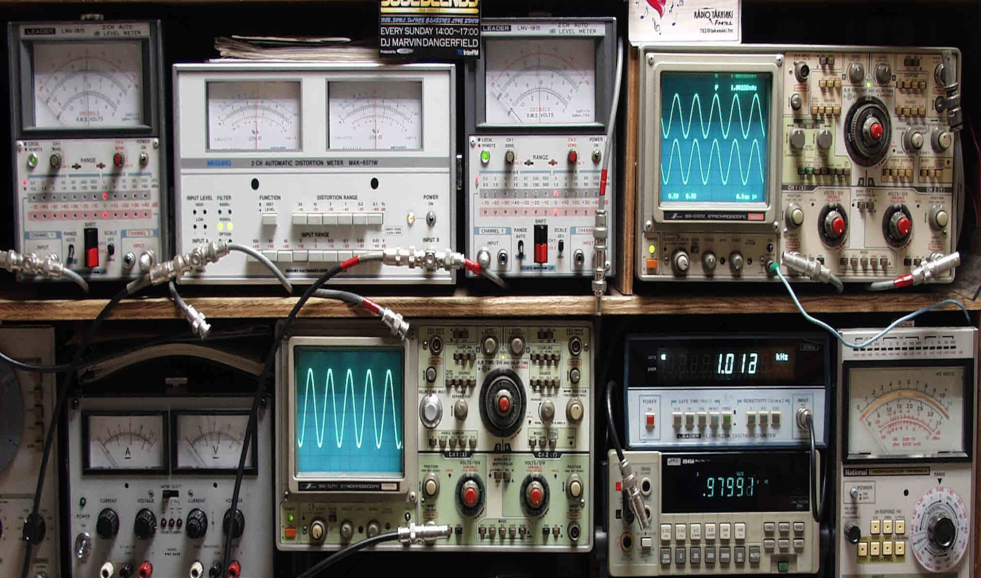 上中左歪み率計=出力の歪み率測定 左メータ=L出力、右メータ=R出力