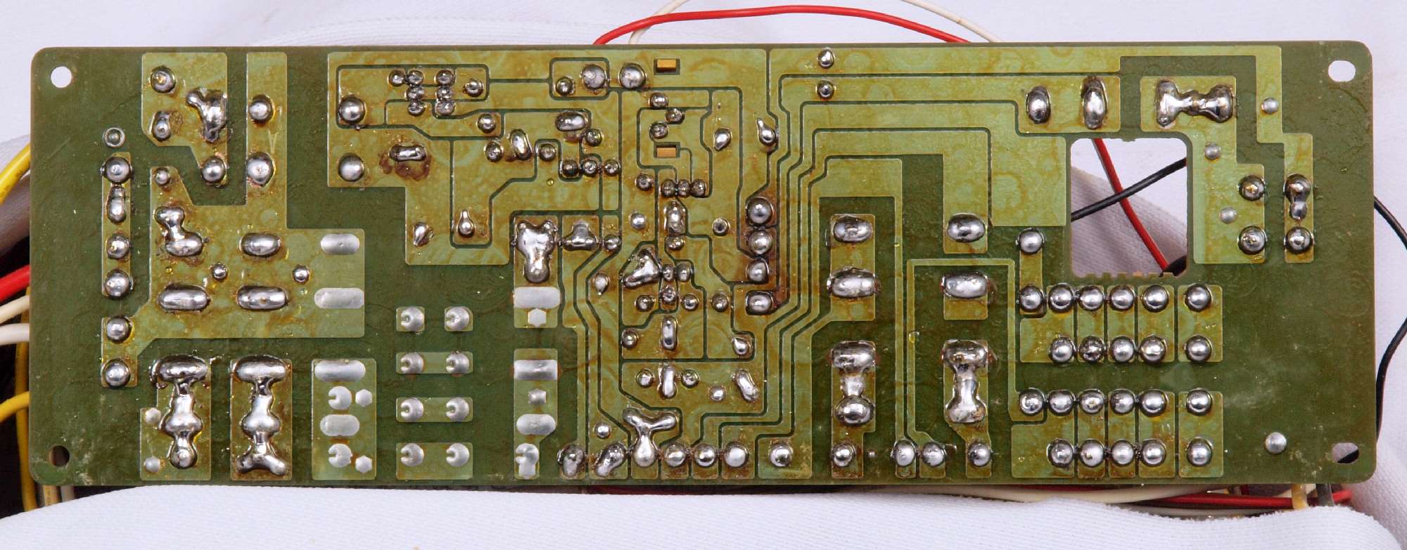 | C24. 修理(半田補正)後 終段・プロテクト基板裏。 全ての半田をやり直す。 | ||||||||||||||||||||||||||||||||||||||||||||||||