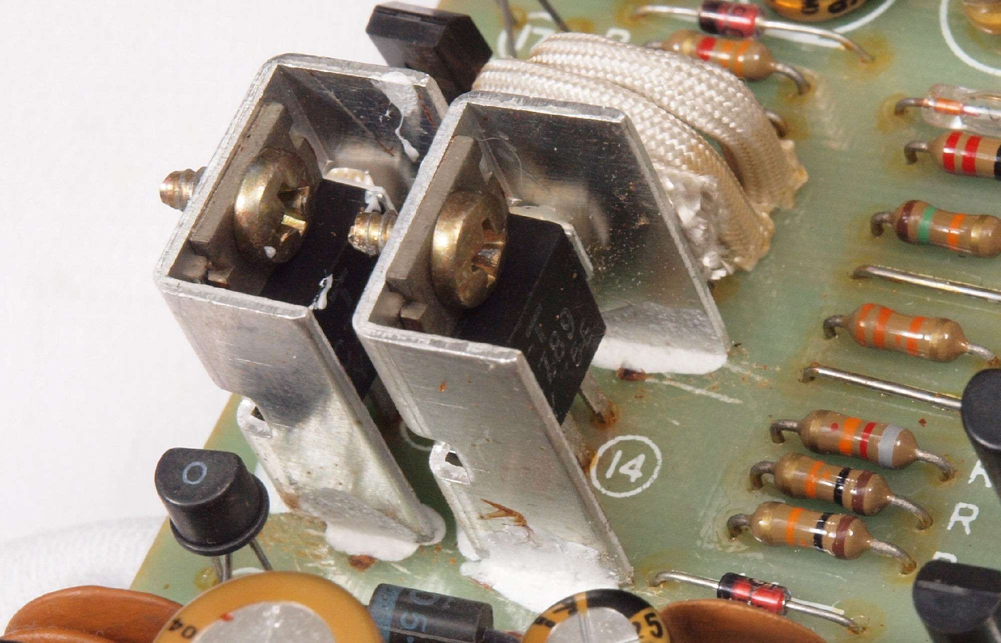C412. 修理前 電源1基板、TR(トランジスター)の放熱器。