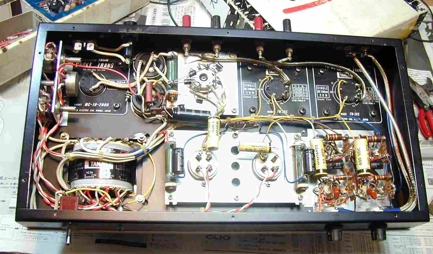 | 2.構成は12AT7パラ−12BH7パラ−2A3 電源トランスを交換すれば300Bに交換可能。 |