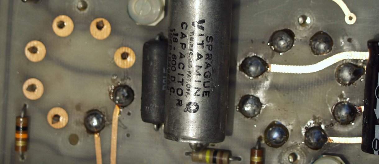 | C1E. 修理中 AMP基板 裏 ソケットを取り除いた所 |
