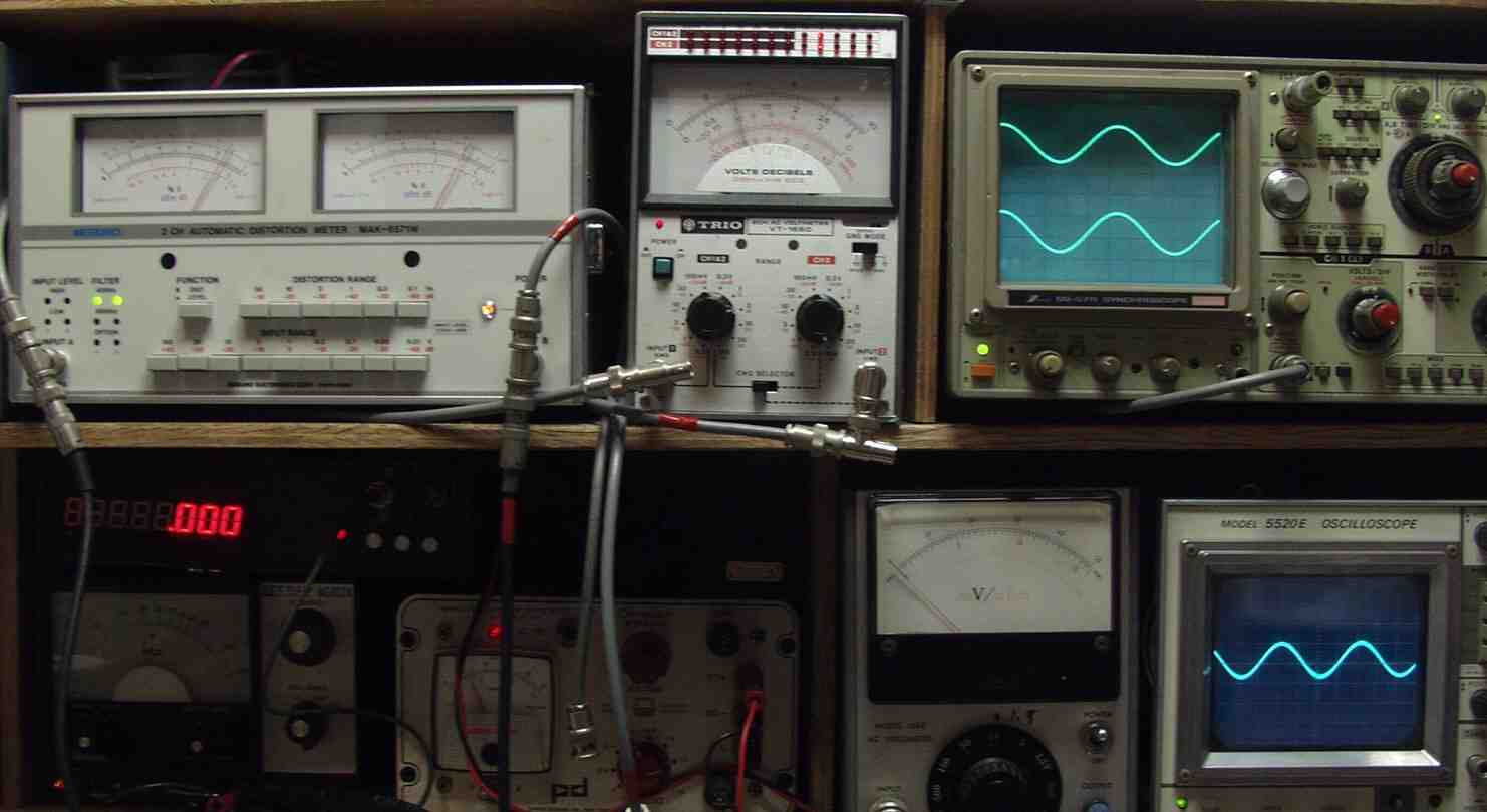 4. 出力測定 1V 歪み率0.09% MM入力=右下オシロ=1000HZ