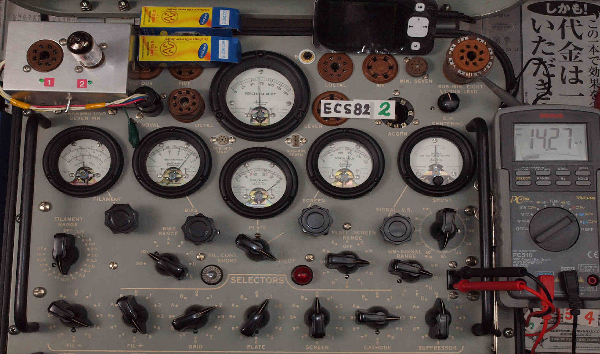 V51. 購入1本目「ECC82」ユニット1。 Gm測定=2600μmho、IP=14.31mA。