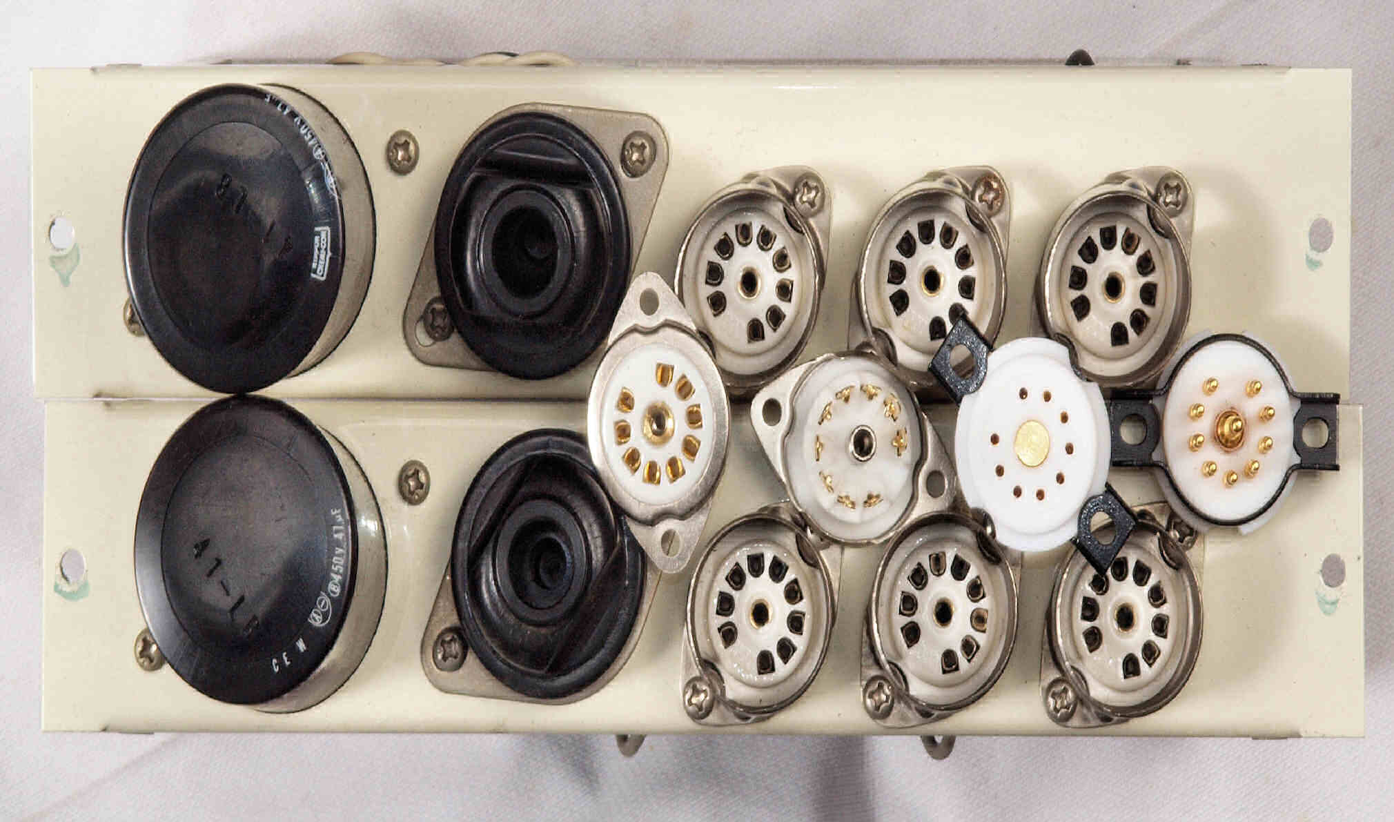 C47. 修理(交換)前 真空管ソケット、ブロック電解コンデンサー。