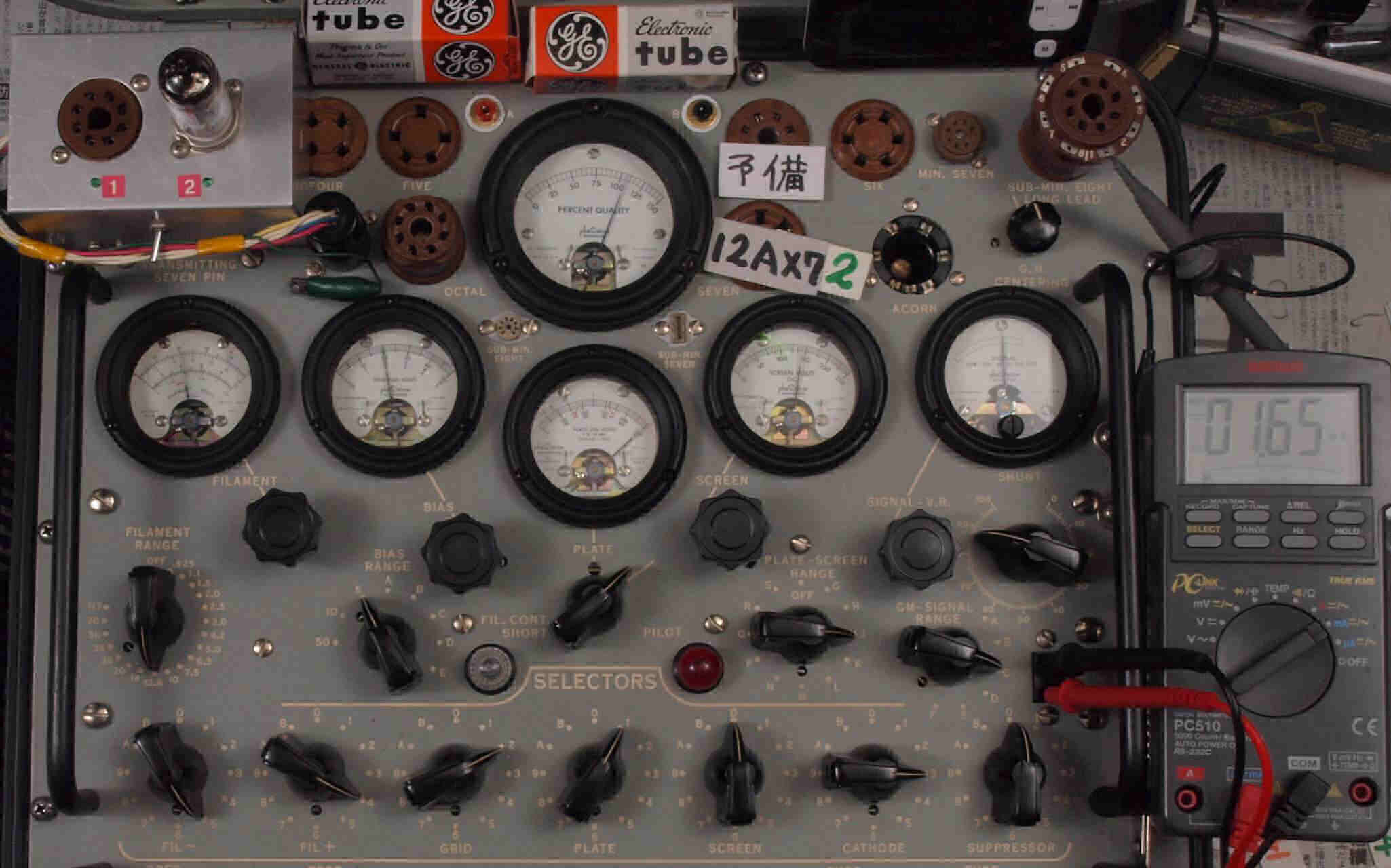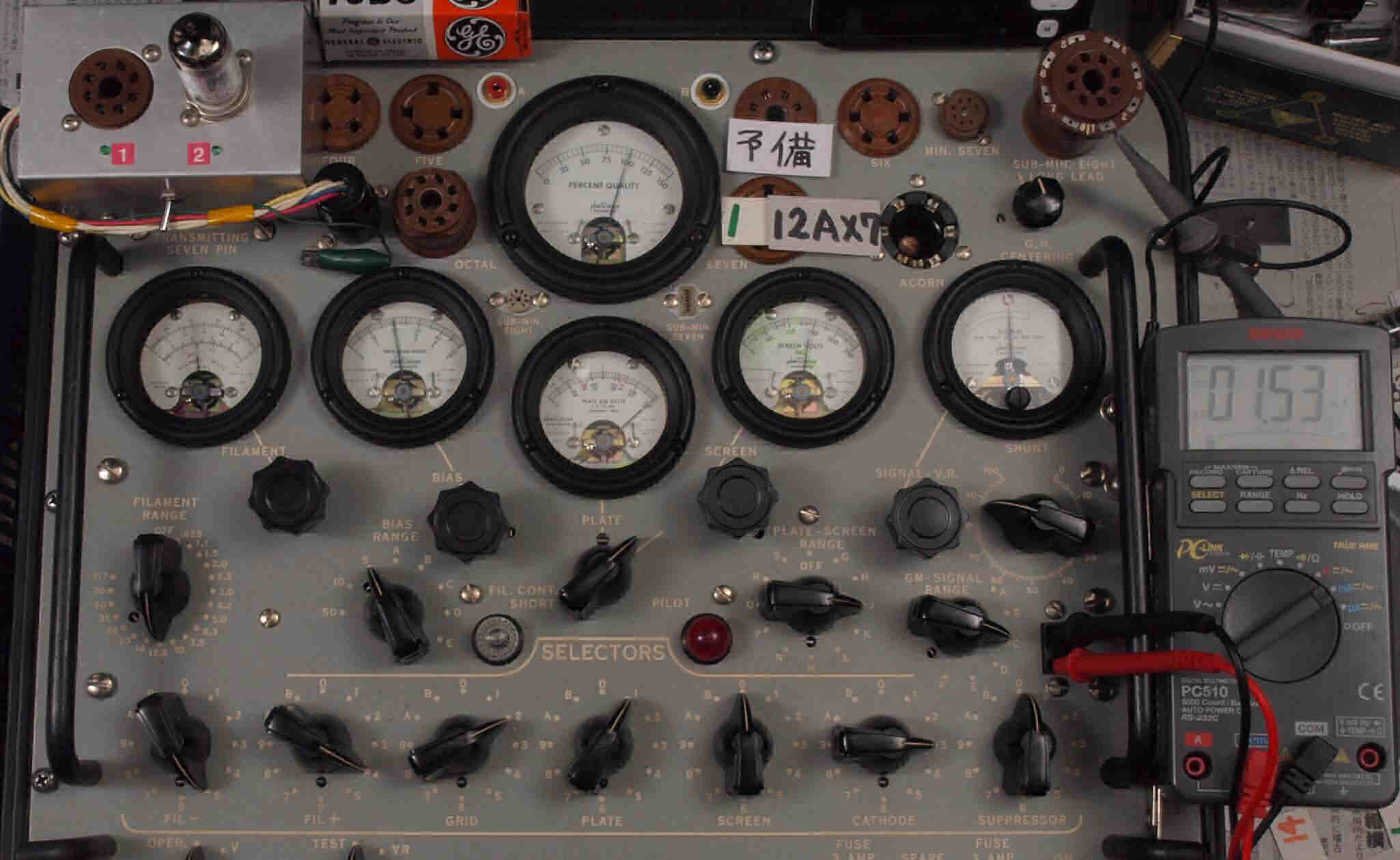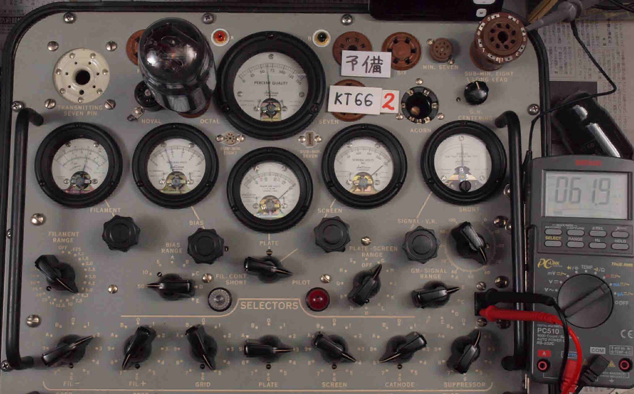 | 12AX7(ECC83) Gm、IP測定。 EF86(6267) Gm、IP測定。 KT66(5881) Gm、IP測定。 GZ32(5V4) エミッション測定。 |