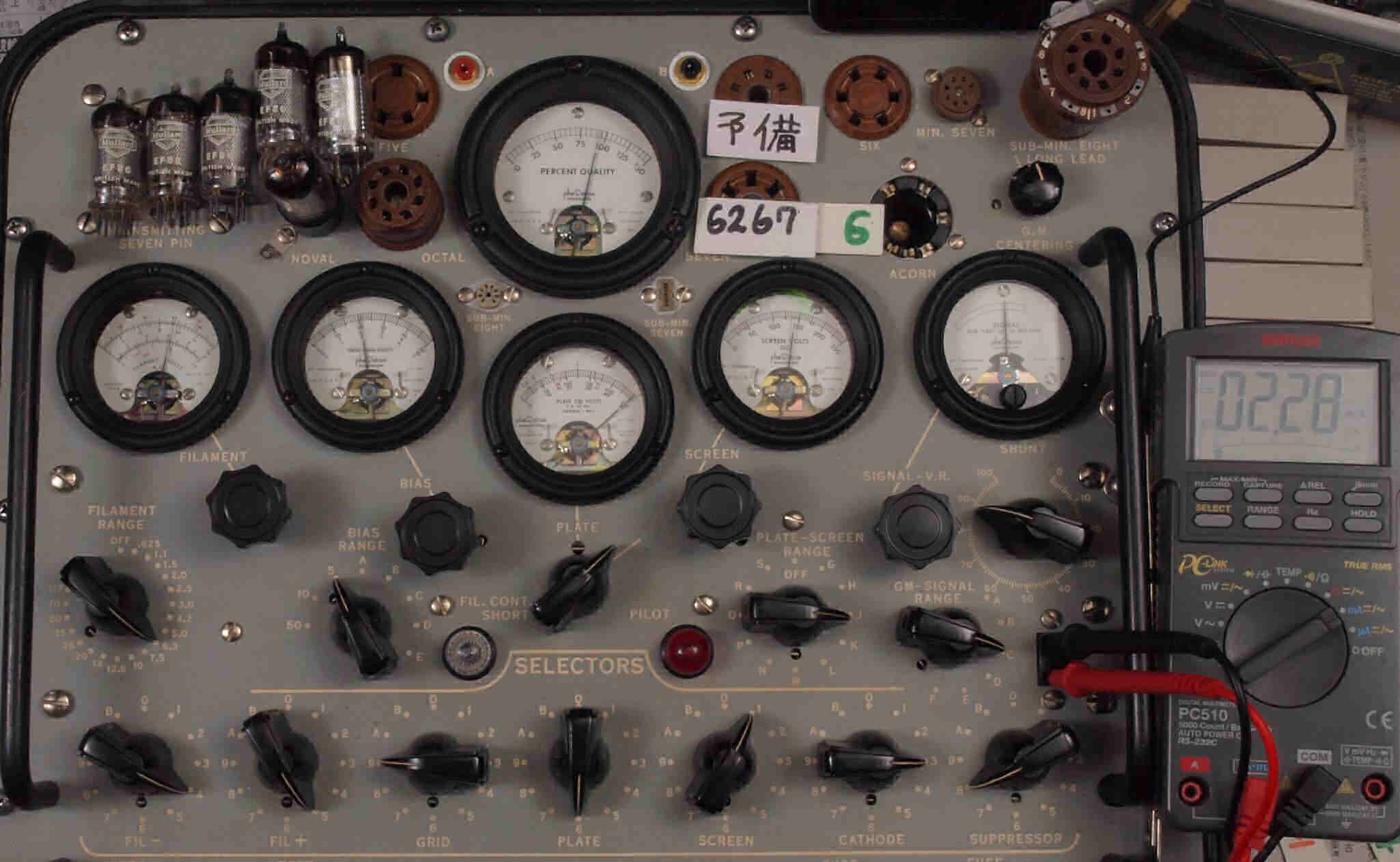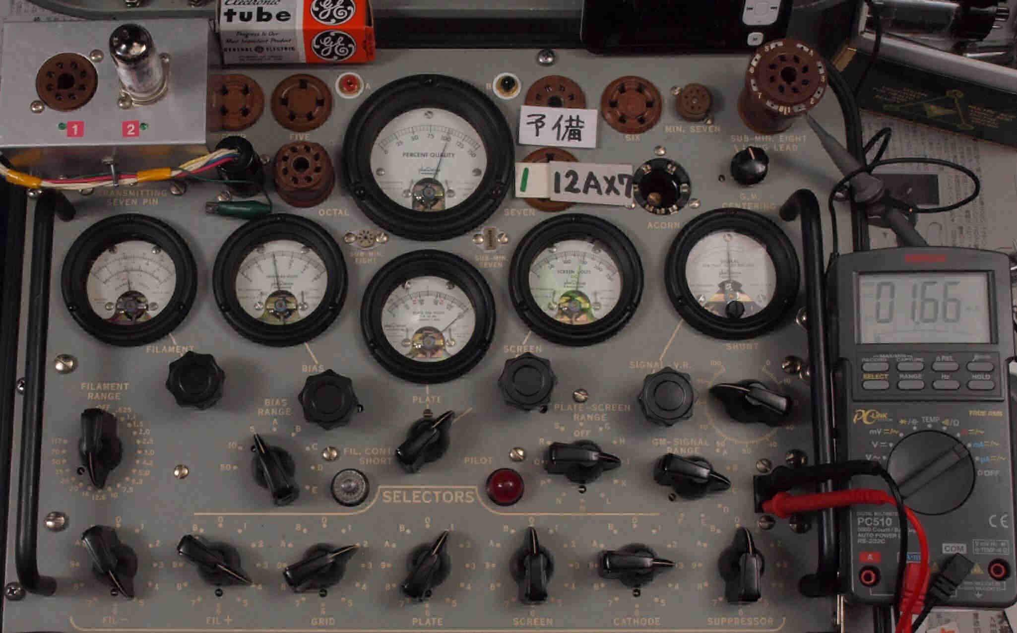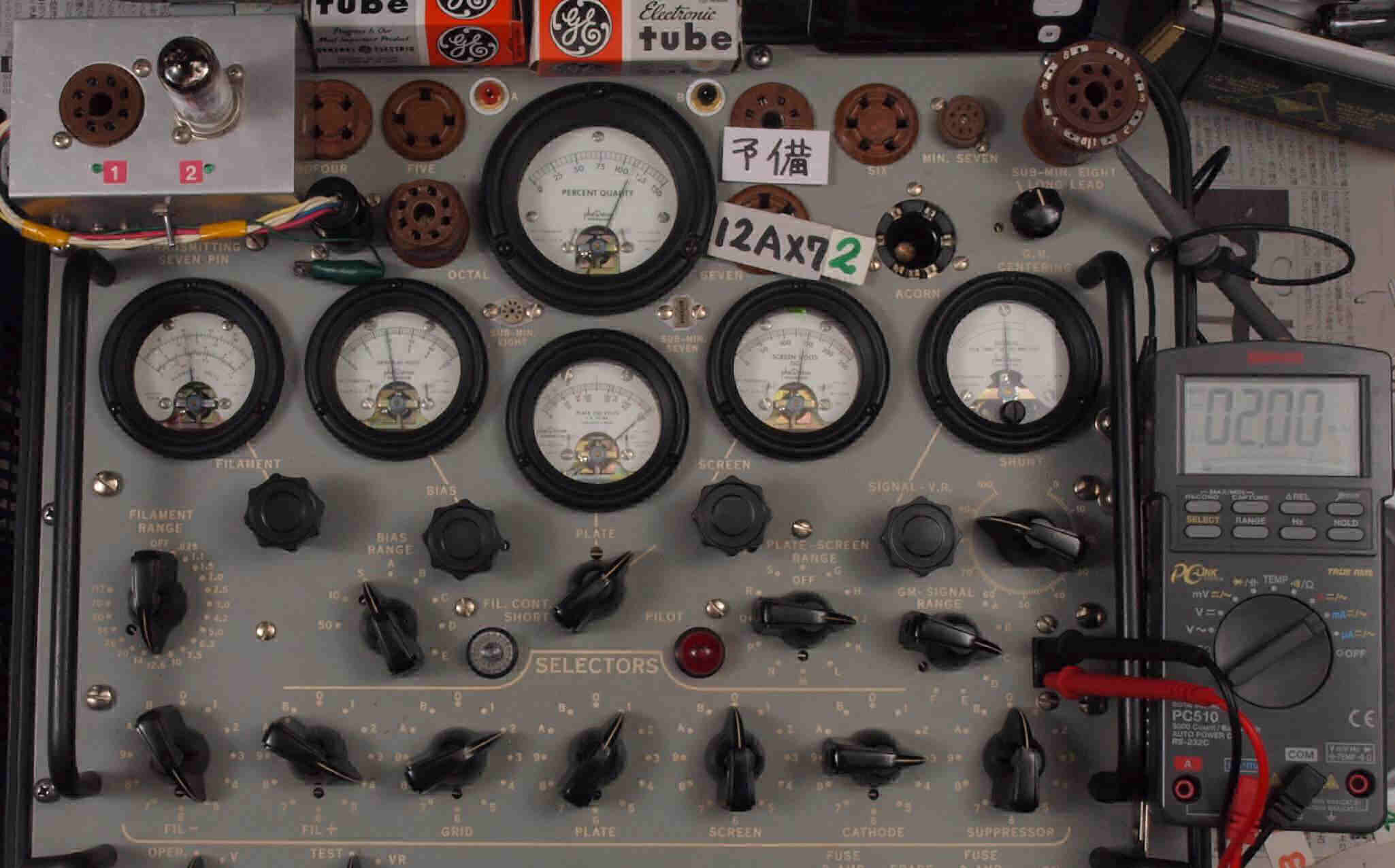 | 12AX7(ECC83) Gm、IP測定。 EF86(6267) Gm、IP測定。 KT66(5881) Gm、IP測定。 GZ32(5V4) エミッション測定。 |