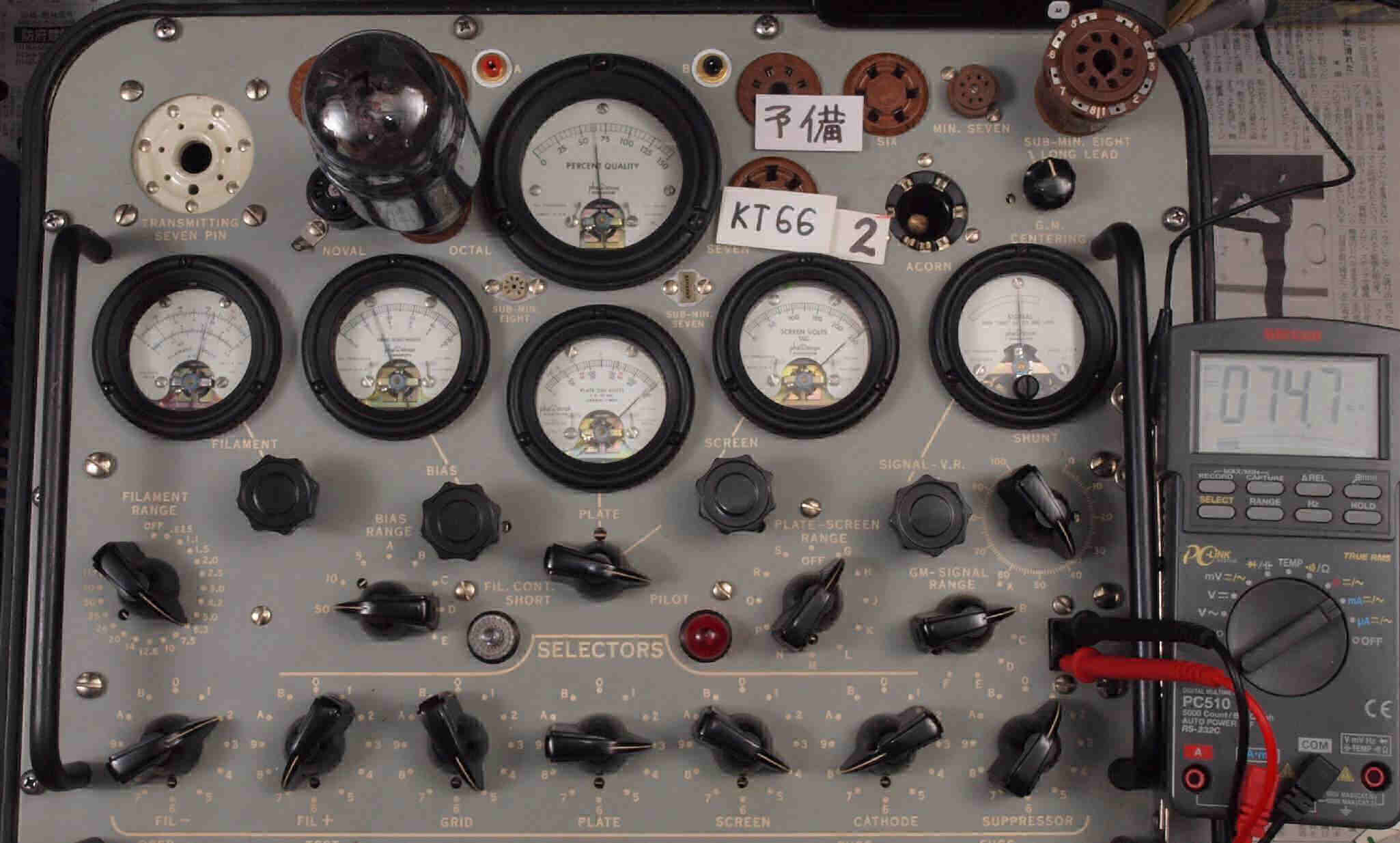 | K2. 2本目「KT66」。 Gm測定=6030μmho、IP=74.7mA。 |