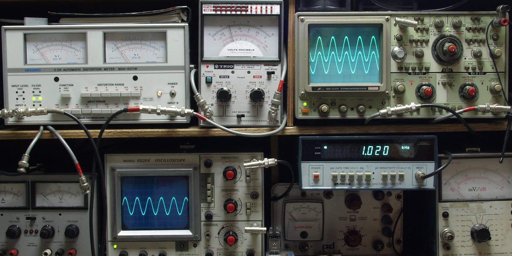 上左オーディオ発振器より400HZ・1KHZの信号を出す(歪み率=約0.003%)