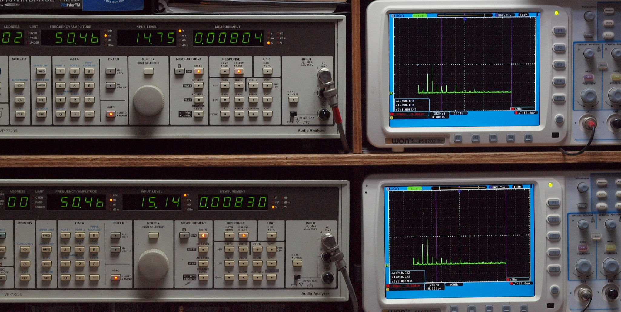 よって、ダイアル設定出力レベルより低くなります。測定機器の仕様や整備の様子はこちら、「VP−7723B」「VP−7201A」。 FFT画面の見方はこちら。