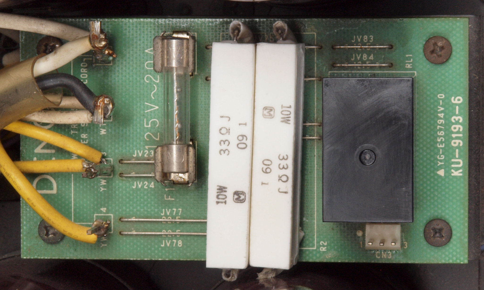 | CF2. 修理後 突入電源抑制回路基板。リレー1個、抵抗2本交換 | ||||||||||||||||||||||||||||||||||||||||||||||