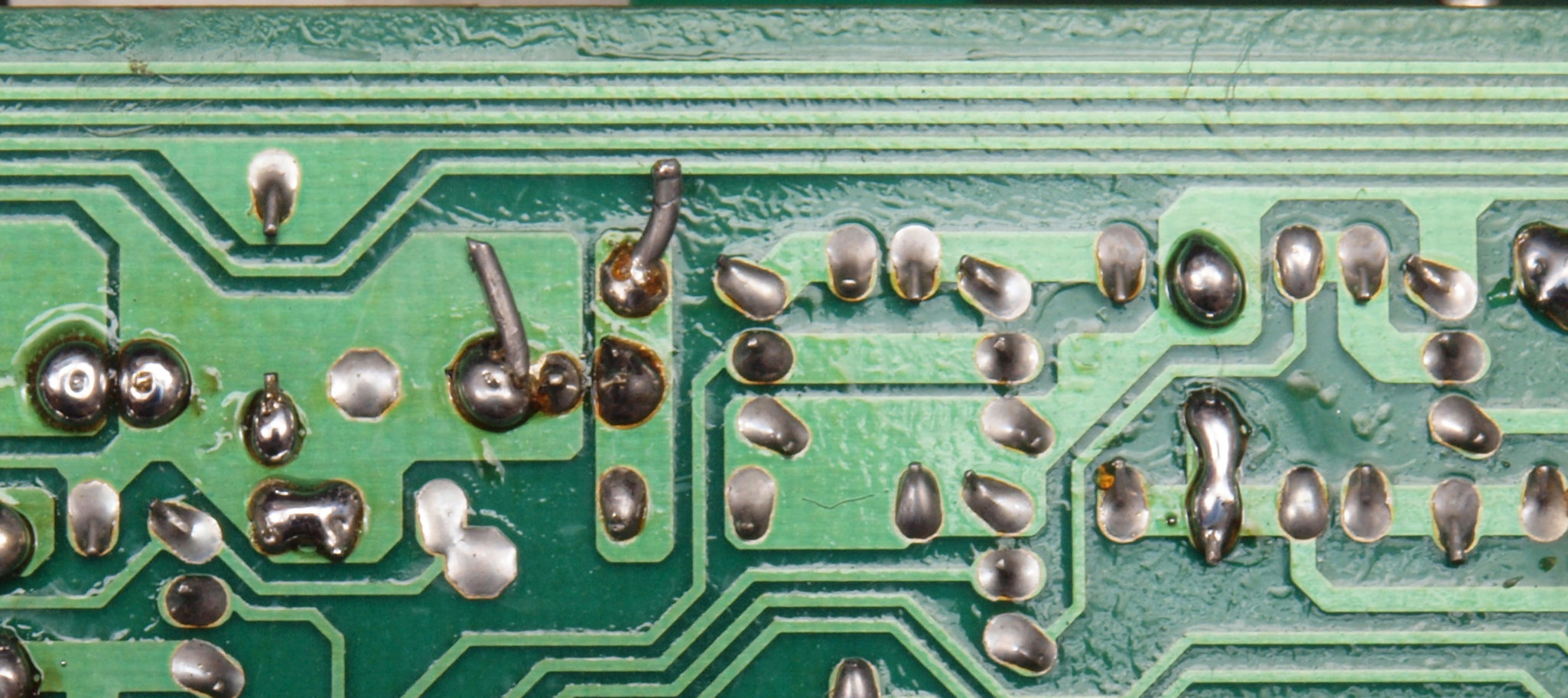 | CD4. 修理(半田補正)後 定電圧基板裏。 半田を全部やり直す。 | ||||||||||||||||||||||||||||||||||||||||||||||
